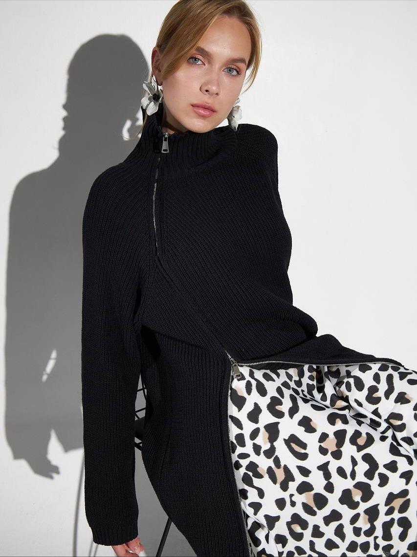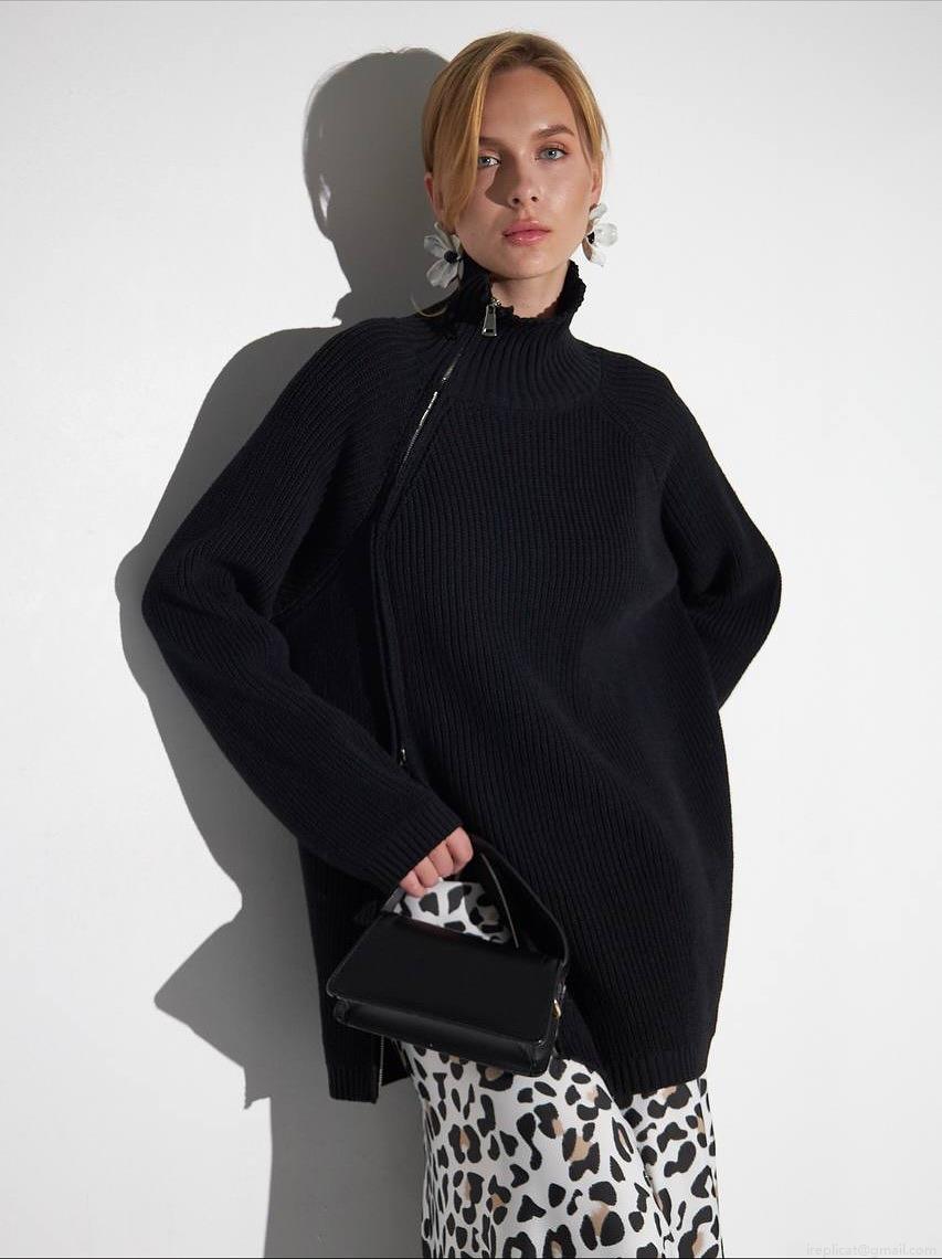 Women's Sexy High Neck Knitted Sweater Loose Side Zipper Long Sleeve Cotton Blend Cardigan Autumn Winter Casual Streetwear Knitwear Outwear Tops