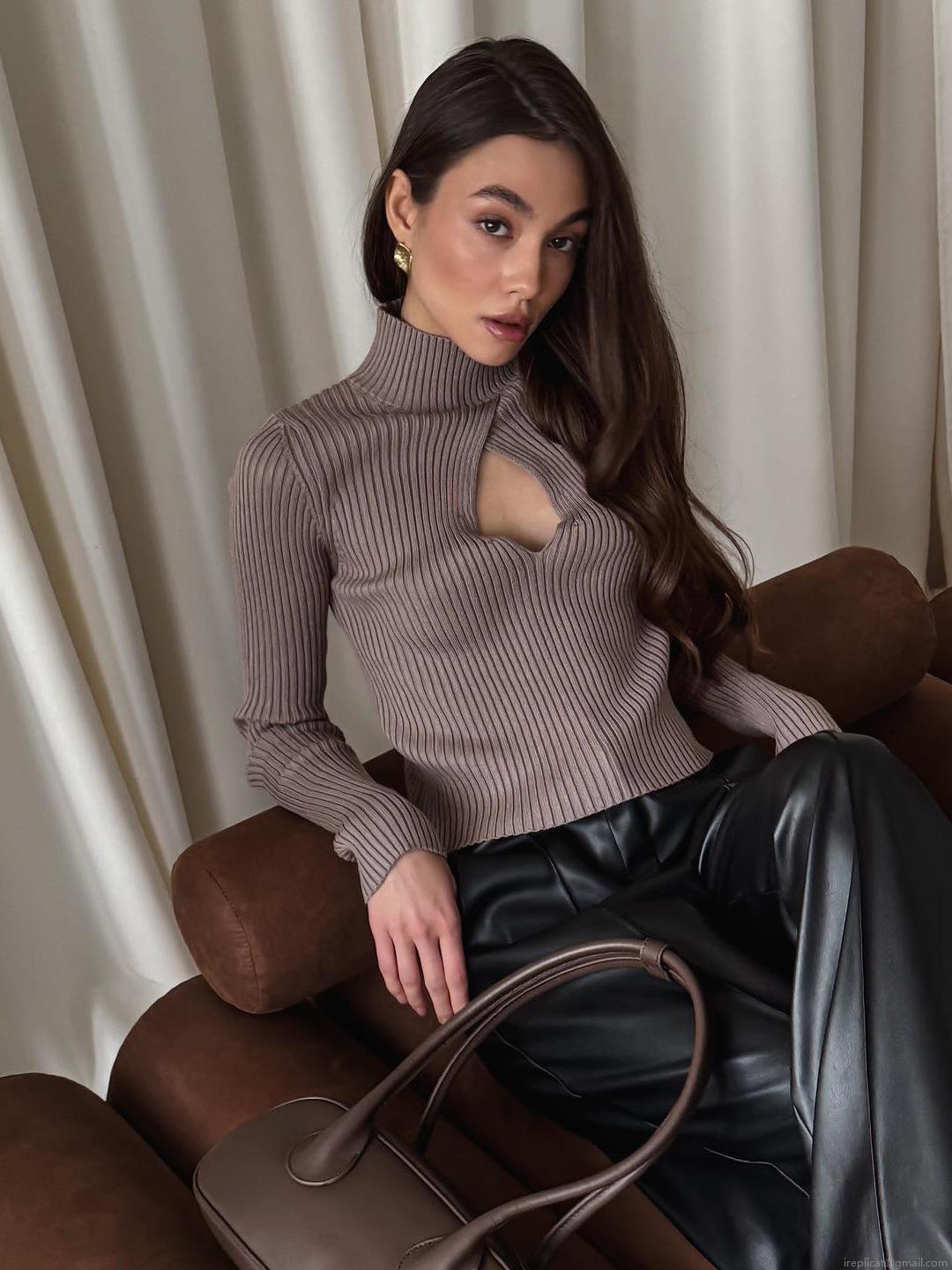 Women's Sexy Hollow Out Turtleneck Ribbed Knit Sweater Slim Fit Long Sleeve Solid Color Pullover Top Casual Chic Streetwear Autumn Winter Jumper