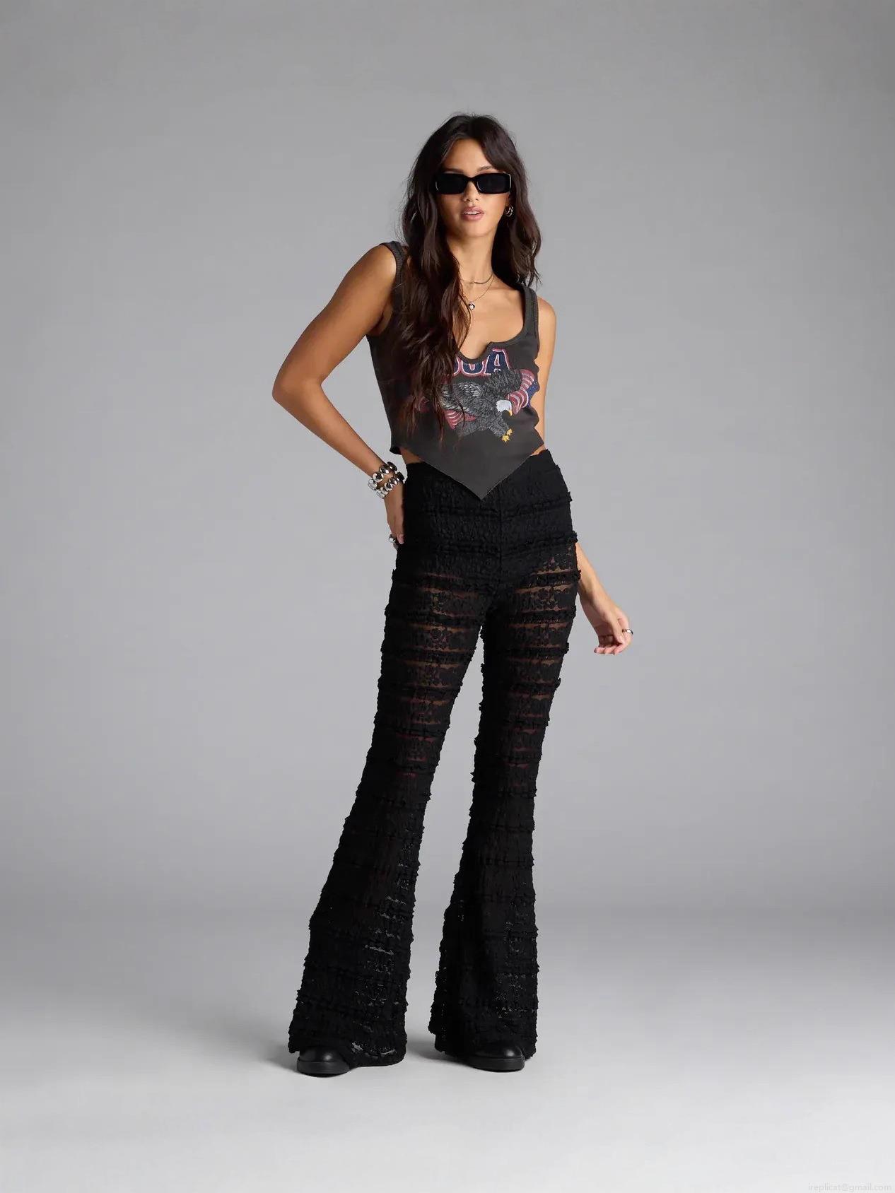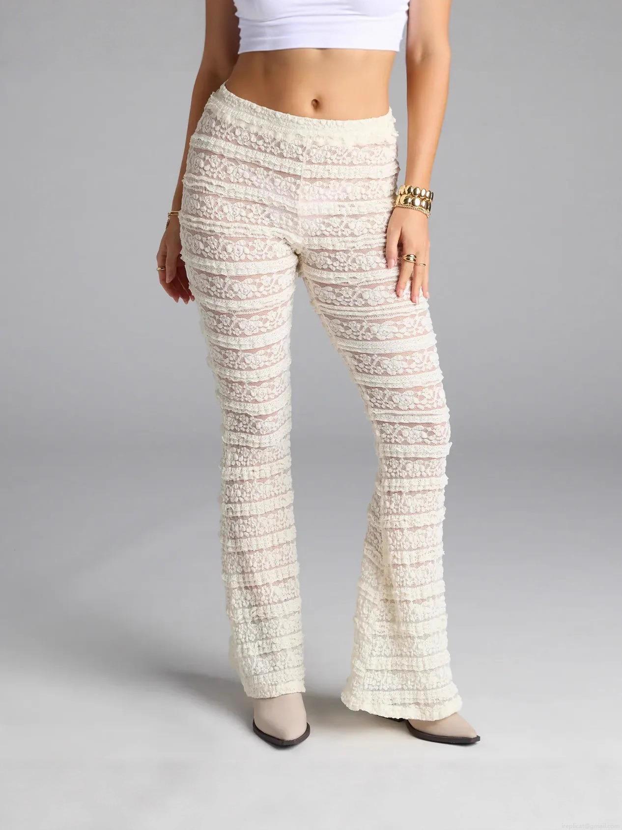Women's Sexy Lace Hollow Out Flare Pants Sheer Low Waist Bell-bottom Trousers for Vacation Streetwear Polyester Spandex Long Pants