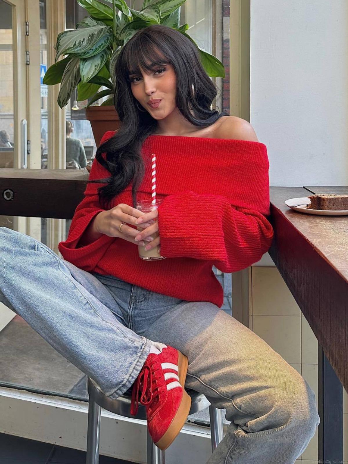 Women's Sexy Off Shoulder Knit Sweater Solid Color Long Sleeve Slim Fit Pullover Autumn Winter Elegant Knitwear Fashion Streetwear Top
