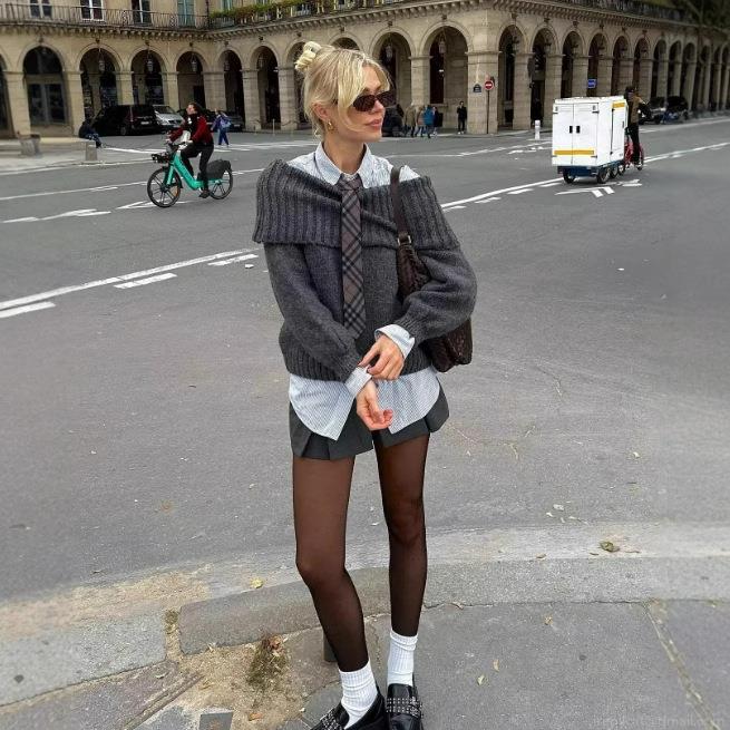 Solid Color, Ribbed, Off-shoulder, Lapel