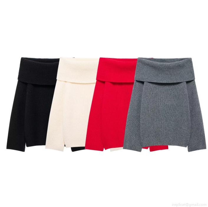 Women's Sexy Off Shoulder Long Sleeve Knitted Sweater Casual Solid Color Foldover Collar Loose Fit Pullover Knitwear Tops For Women