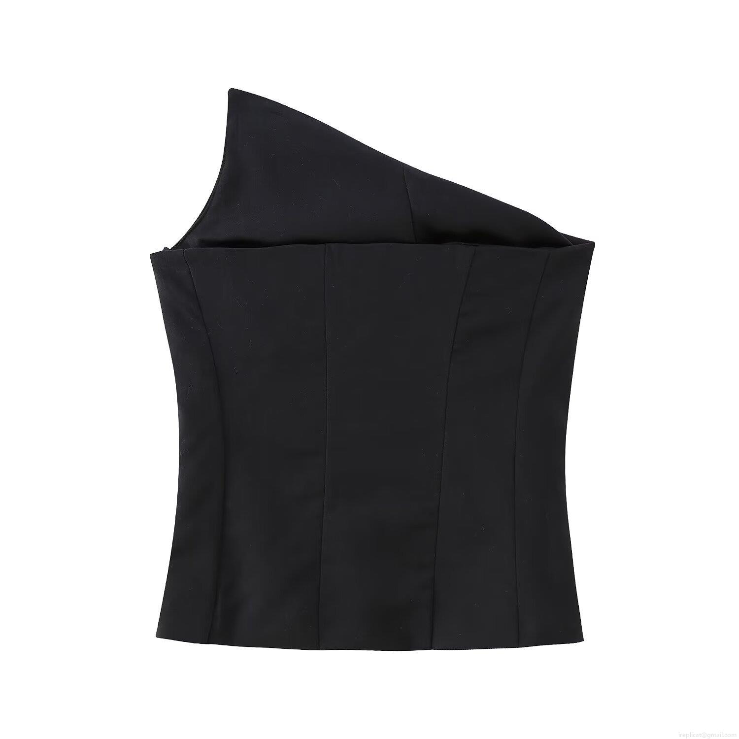 Women's Sexy One Shoulder Asymmetric T-Shirt Solid Black Slim Fit Sleeveless Crop Top 100% Polyester Streetwear Summer Casual Tee