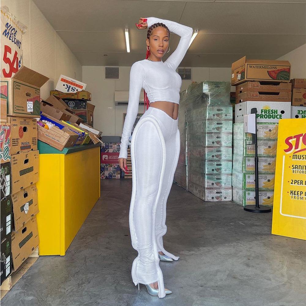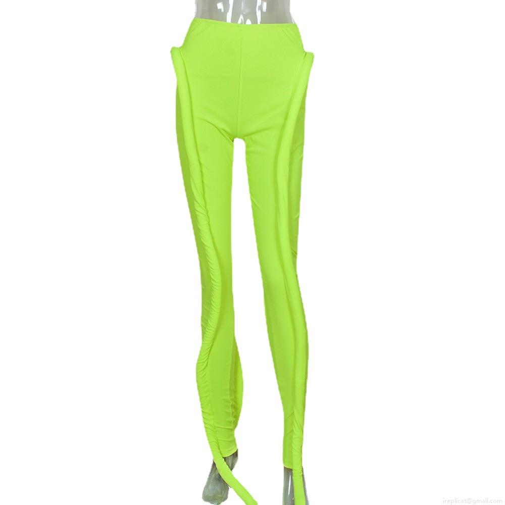 Women's Sexy Ribbed Tight Pencil Pants With Personality Side 3D Ruffles Stacking Design Streetwear Mid Waist Long Trousers For Hot Girl