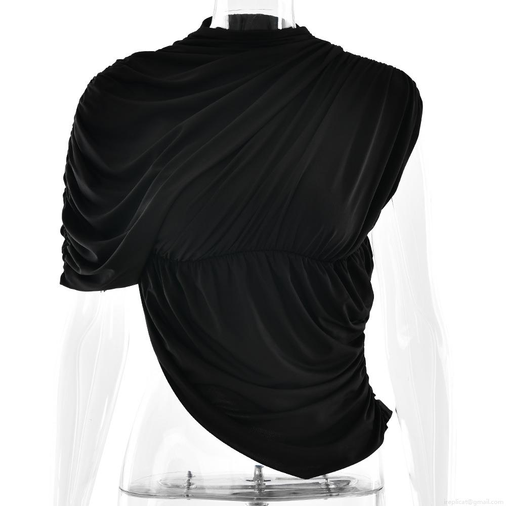 Women's Sexy Ruched One Shoulder T-Shirt Asymmetrical Single Sleeve Pleated Top Milk Silk Polyester Slim Fit Streetwear Party Clubwear Tee