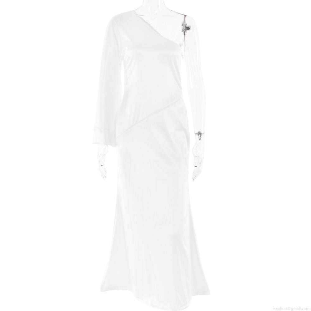 Women's Sexy Satin One Shoulder Long Sleeve Backless Maxi Dress Elegant Bodycon Evening Party Gown Asymmetrical Neck Satin Prom Dress for Women