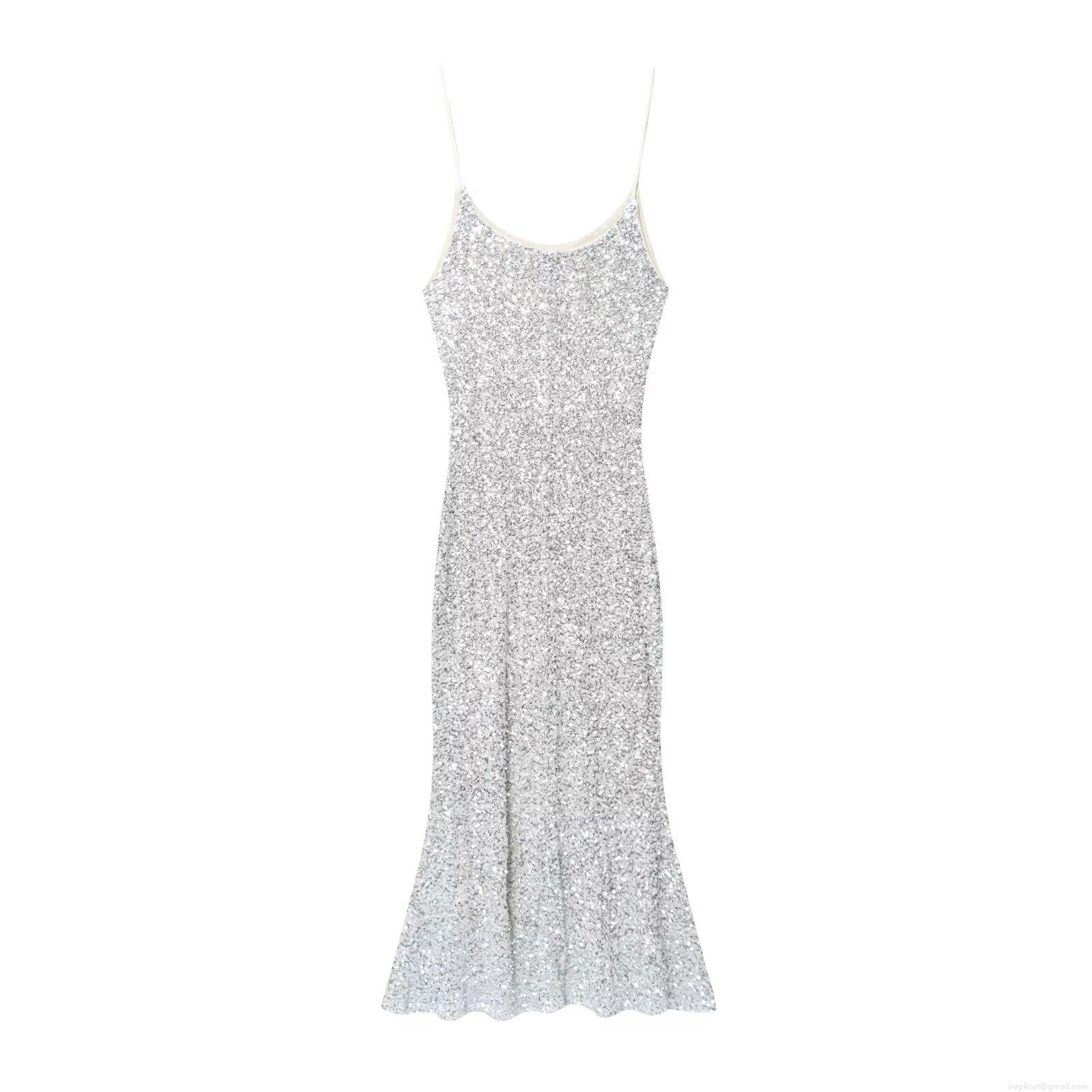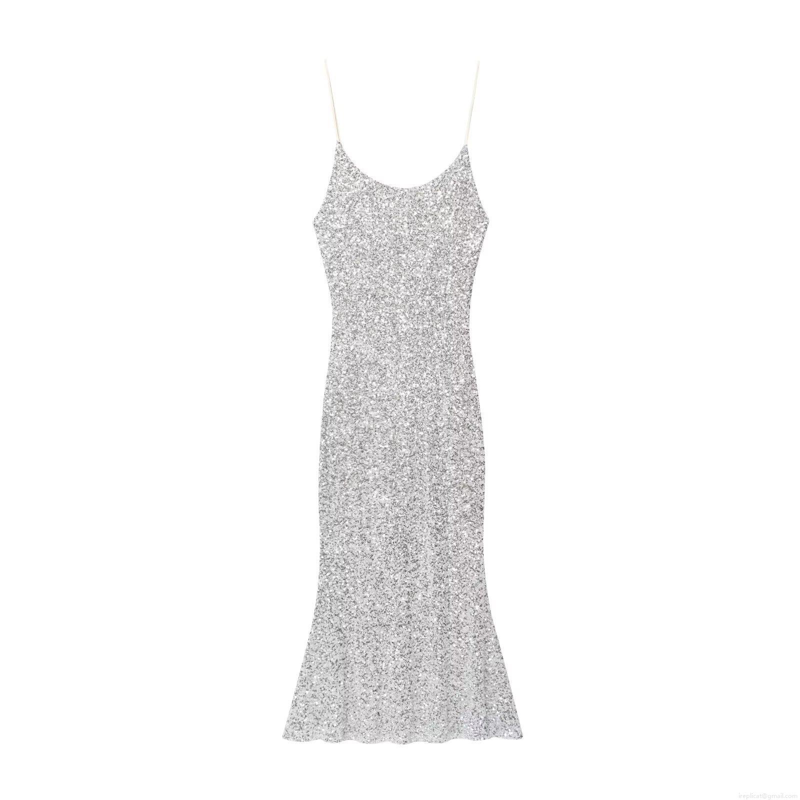 Solid Color, Sequin Decoration, Deep V-neck, Thin Straps