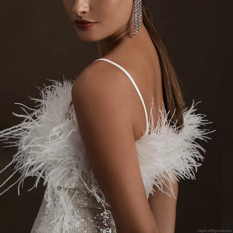 Solid Color, Splice, Sequin, Backless, Feather Decorations
