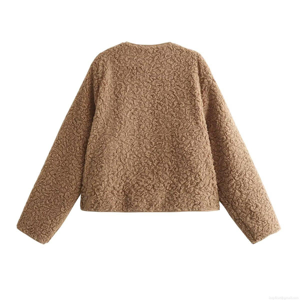 Women's Faux Suede Stand Collar Jacket Casual Solid Color Long Sleeve...