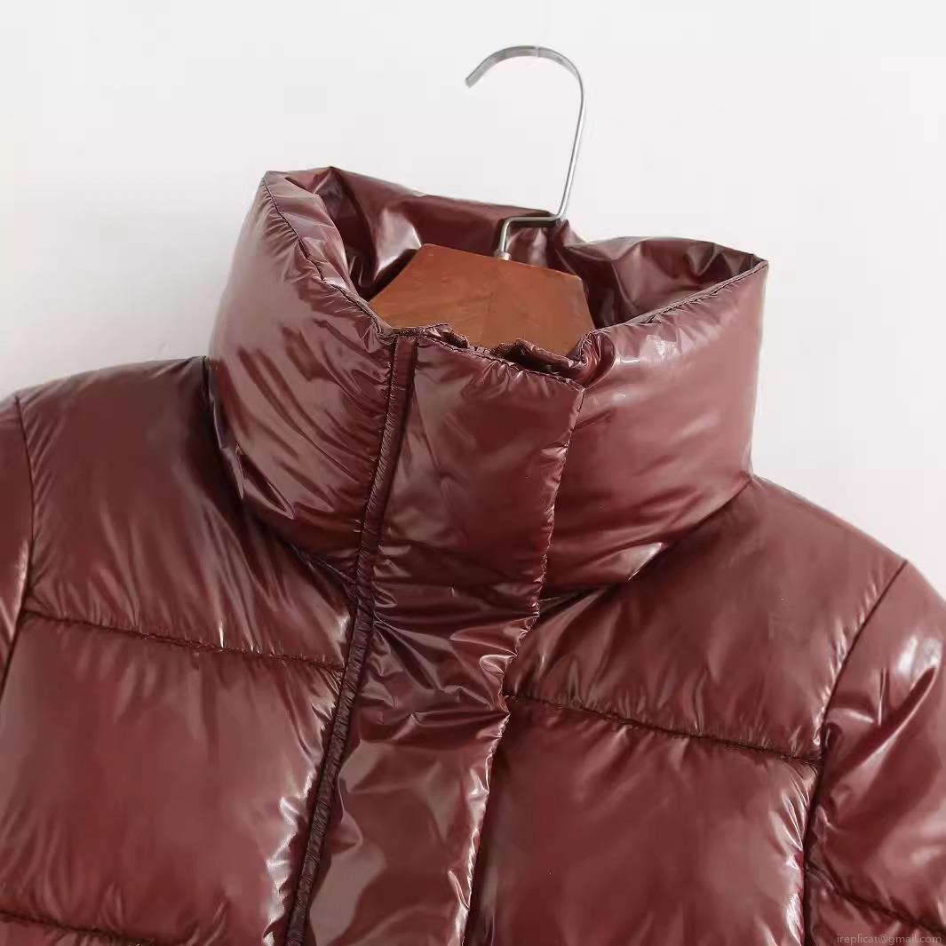 Solid Color, Quilting, Zipper, Drawstring, Turtleneck, Glossy Patent Leather