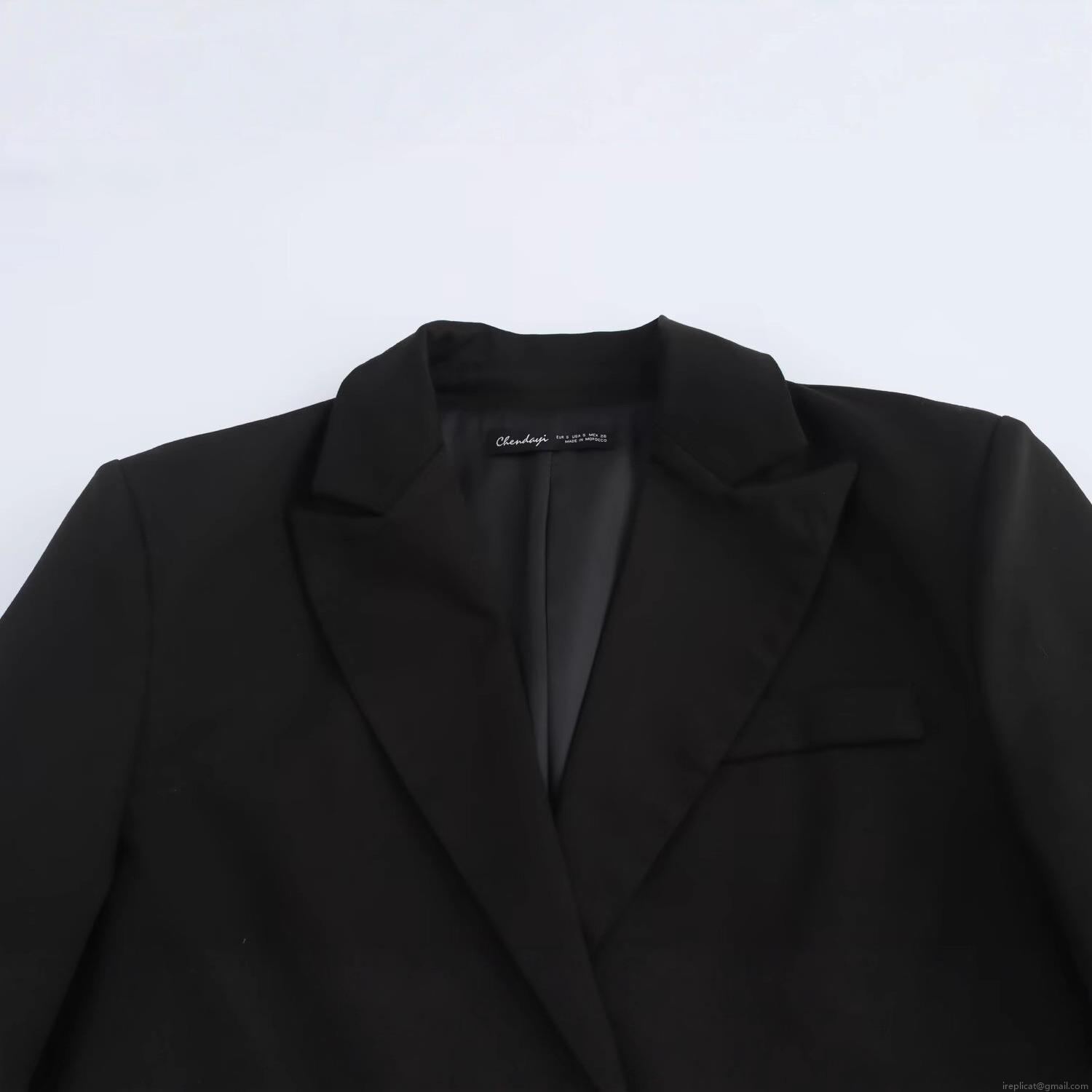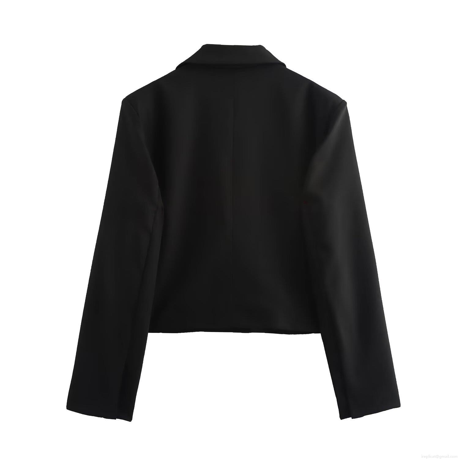 Women's Short Blazer Jacket Polyester Lapel Long Sleeve Solid Black Slim Fit Casual Streetwear Crop Suit Coat
