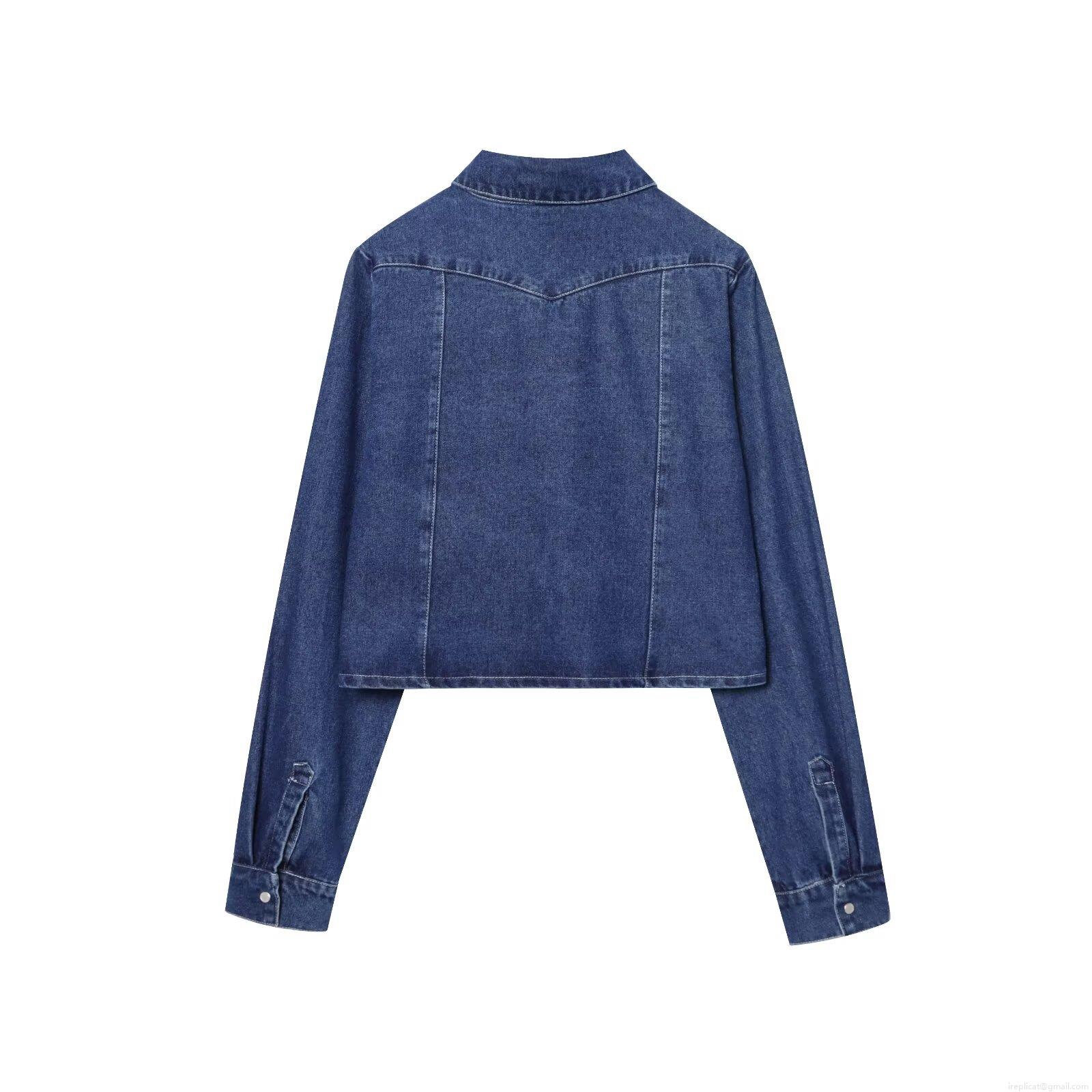 Women's Short Denim Jacket Casual Cotton Blue Jean Coat With Pockets And Pearl Buttons Long Sleeve Lapel Outwear For Women Fashion Streetwear