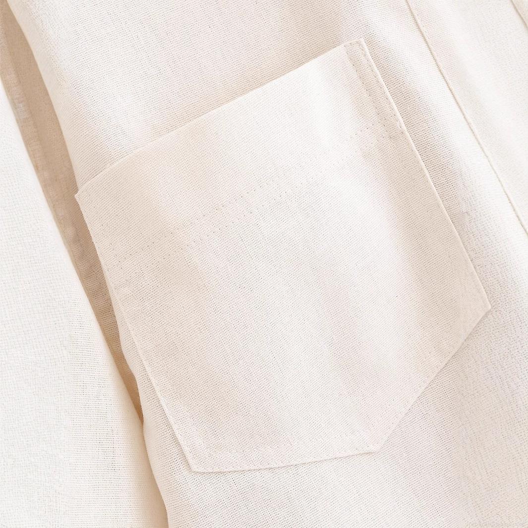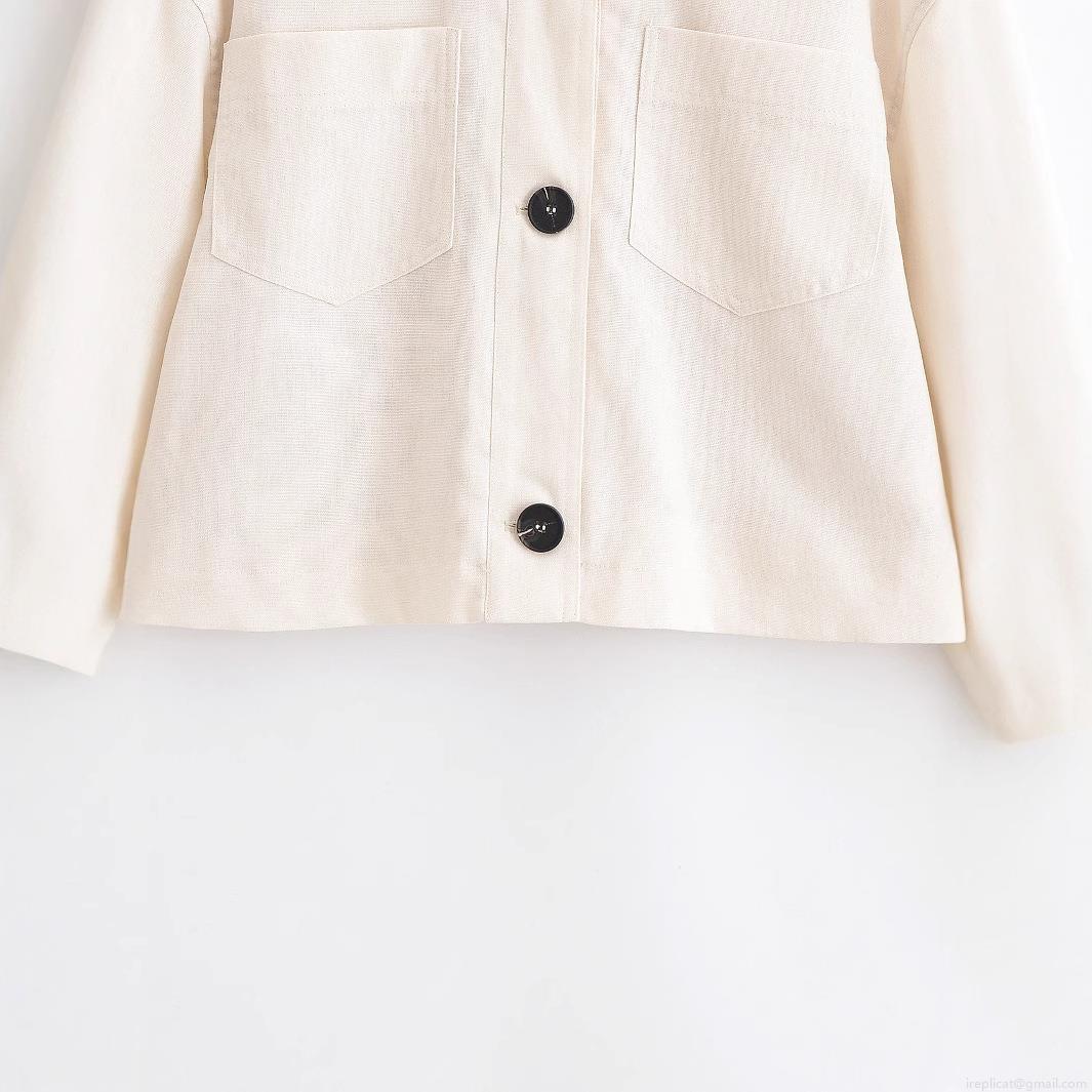Women's Short Jacket Fashion Linen Like Polyester Single Breasted Coat With Large Pockets Turn Down Collar Elegant Solid Long Sleeve Outerwear For Daily Work