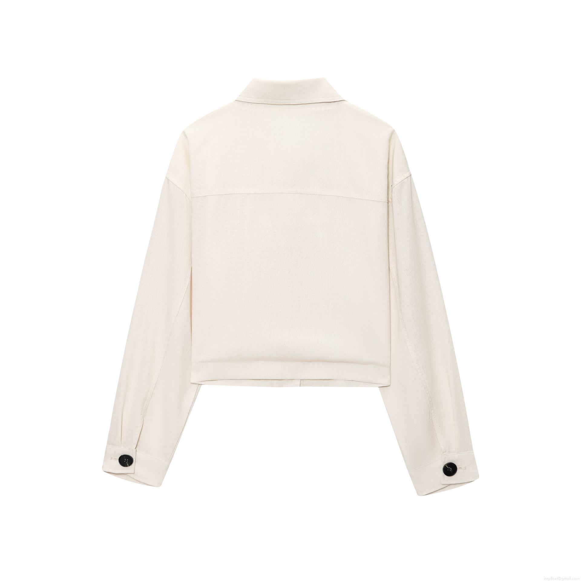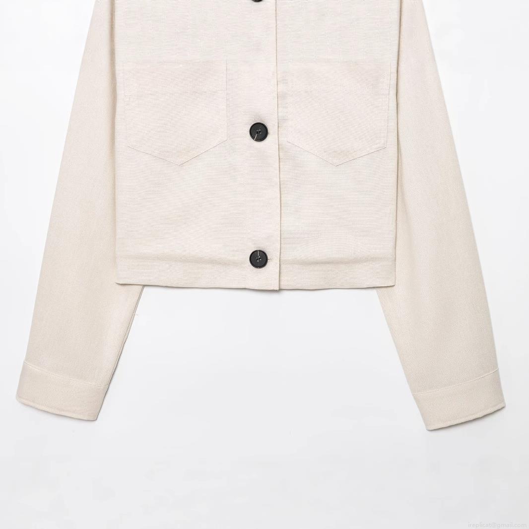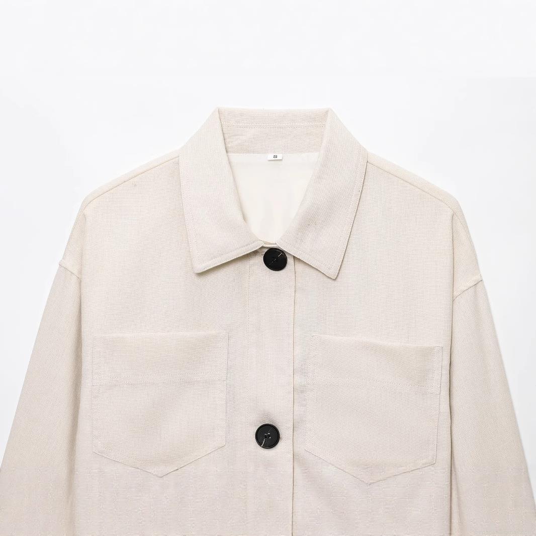 Women's Short Lapel Jacket Linen Blend Casual Long Sleeve Outerwear With Black Buttons And Dual Chest Pockets For Daily Work Spring Autumn