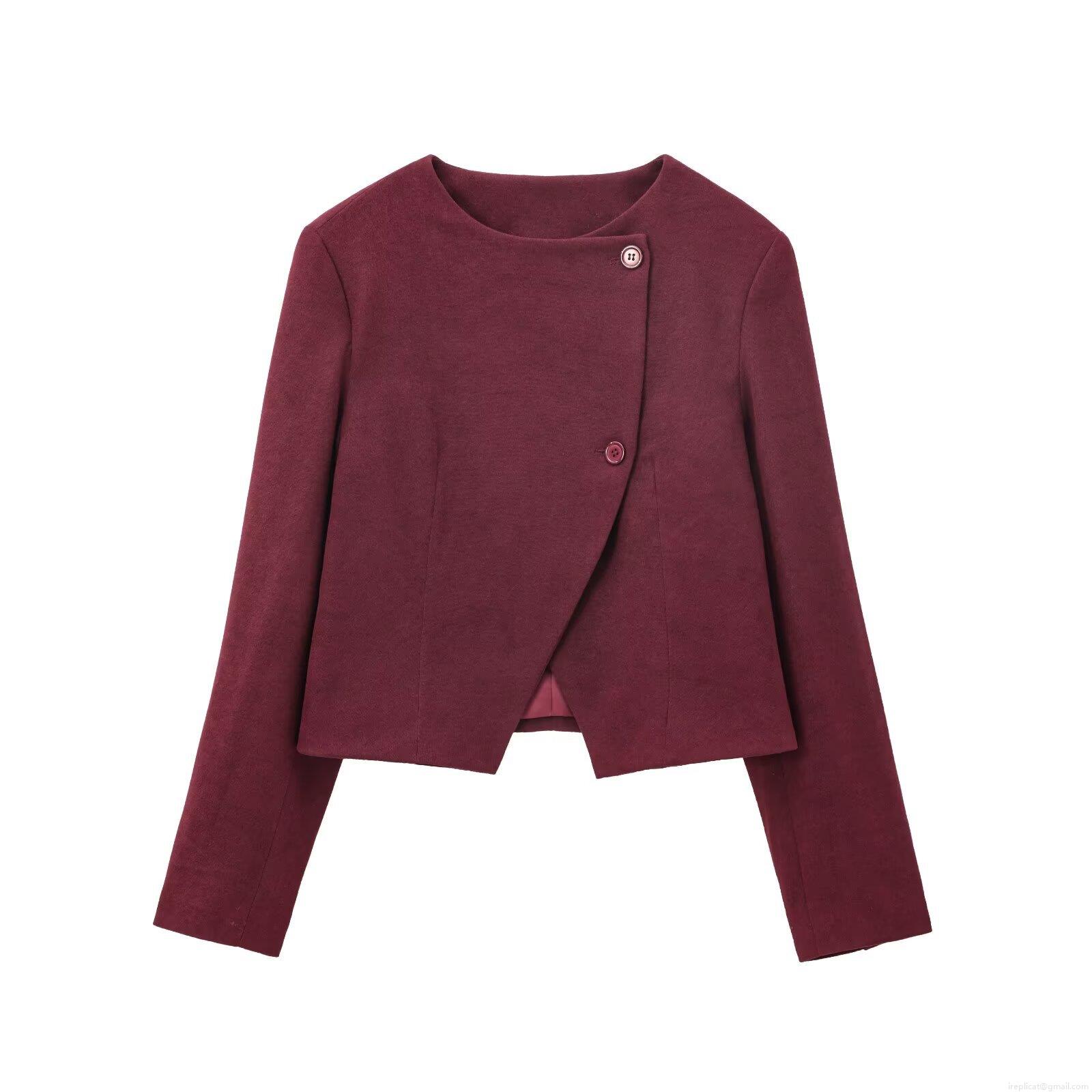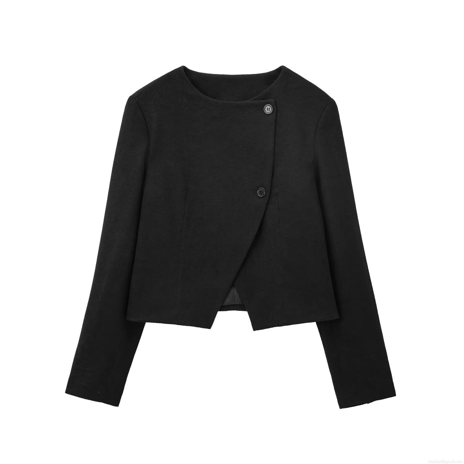 Women's Short Outerwear Minimalist Asymmetric Hem Round Neck Single Breasted Polyester Brushed Twill Jacket For Casual Office Wear