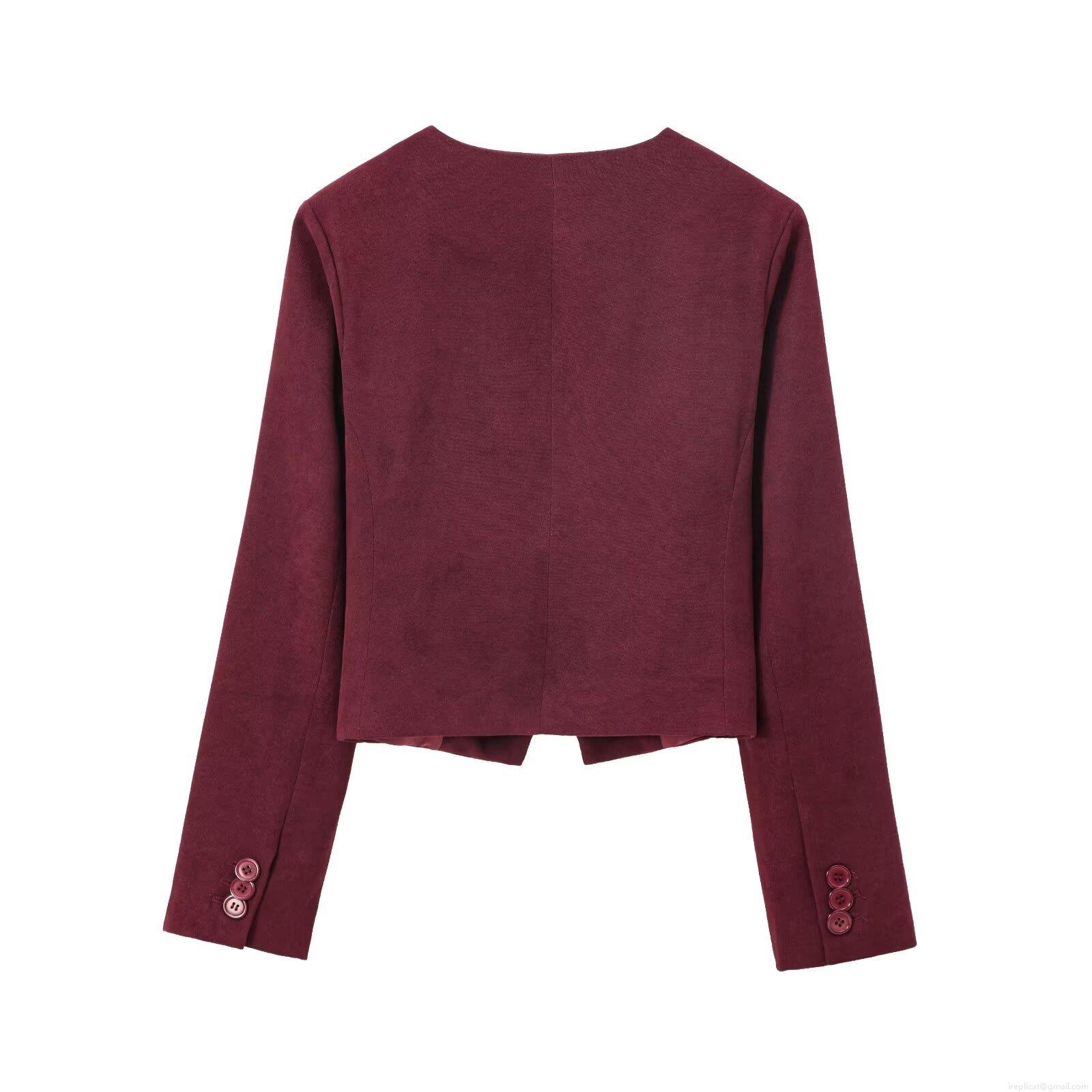 Women's Minimalist PU Faux Leather Jacket Round Neck Single Breasted...