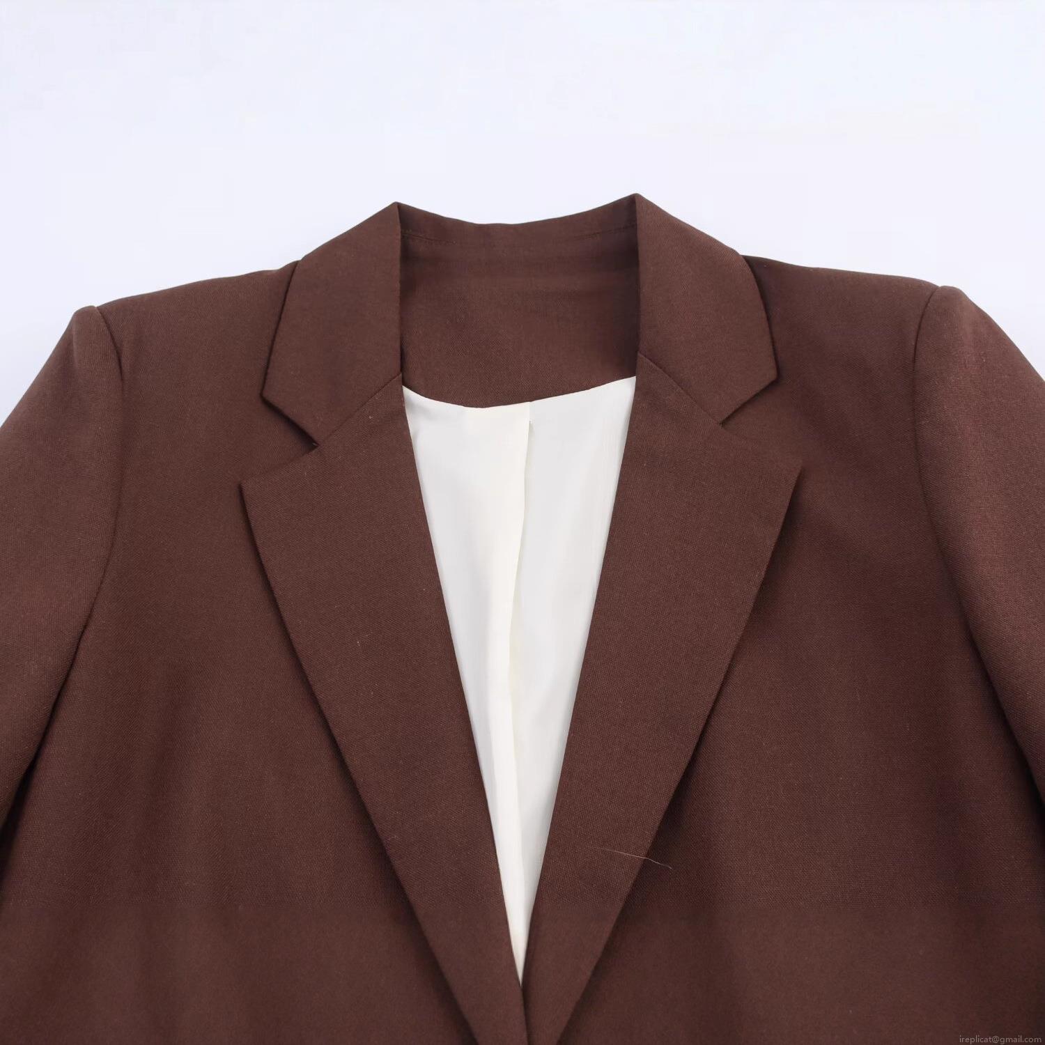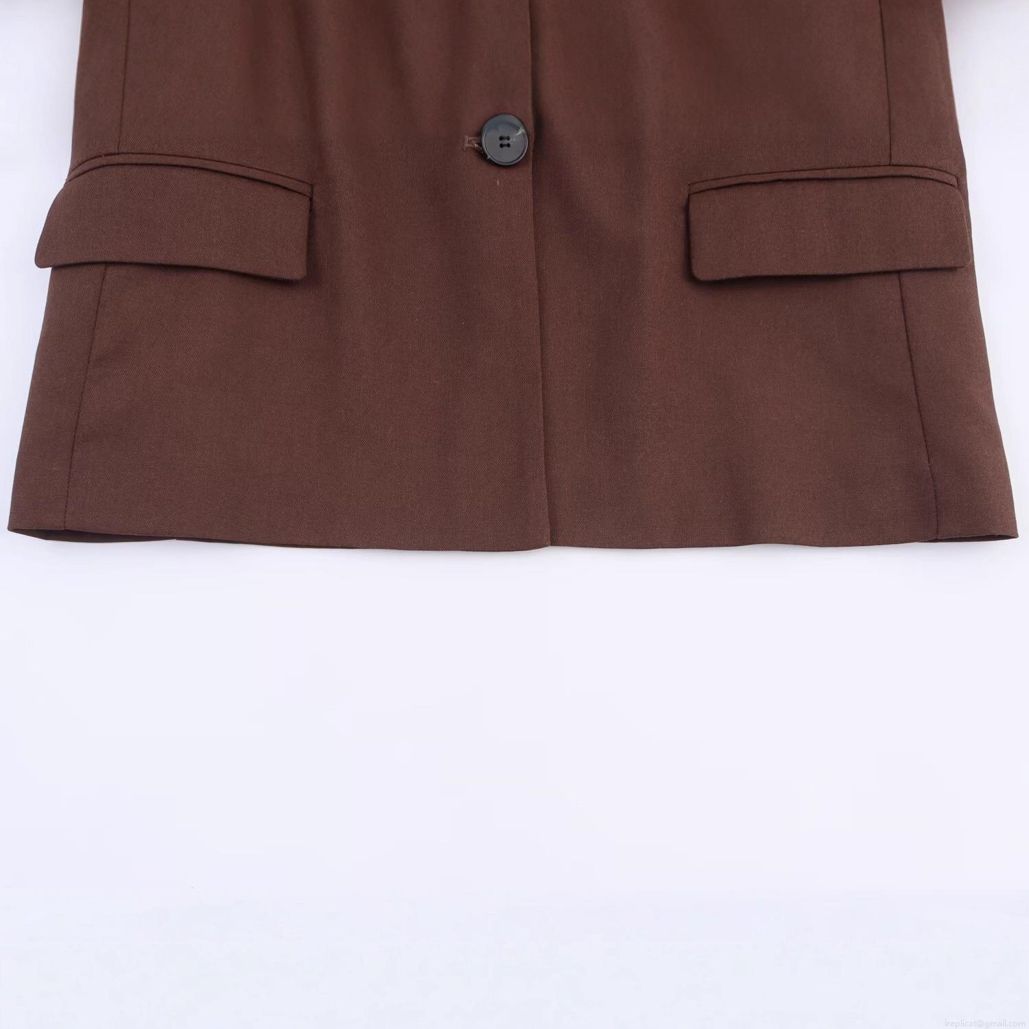 Women's Short Sleeve Blazer Jacket Solid Color Lapel Collar Single Button Outerwear With Flap Pockets Casual Individual Street Style Fashion Dark Brown Coat For Autumn