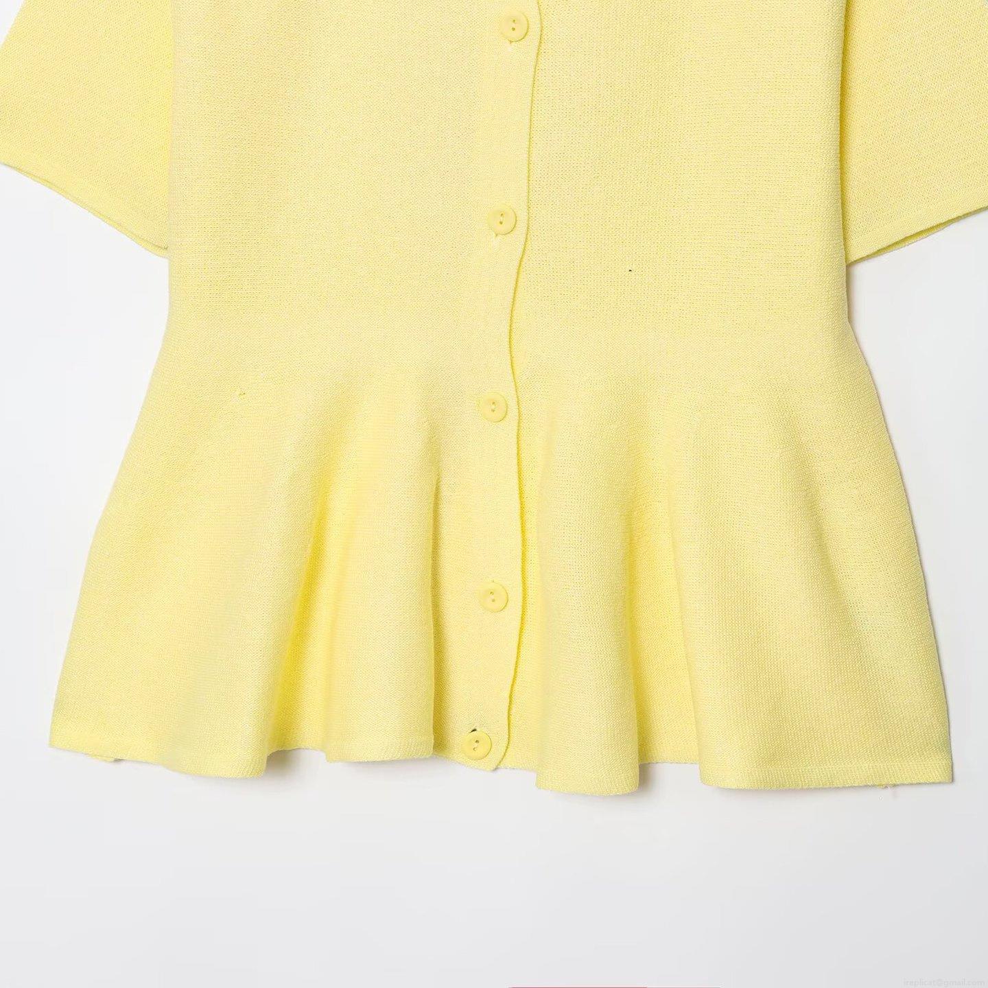 Women's Short Sleeve Knit Cardigan Top Peplum Hem Round Neck Button Down Solid Color Sweet Style Knitted Summer Fashion Outerwear 100% Polyester