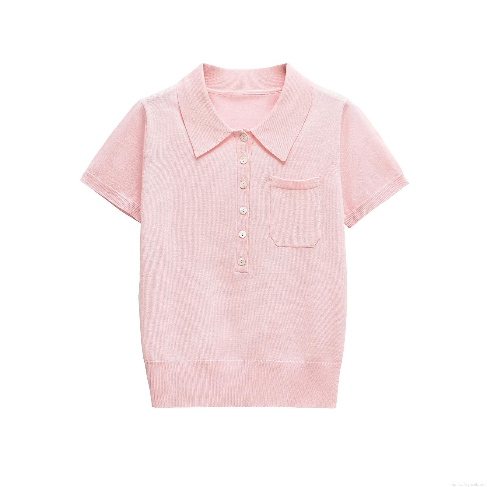 Women's Short Sleeve Knit Polo Shirt Mercerized Cotton Polyester Blend Summer Casual Streetwear Solid Color Button Front Top With Pocket For Women
