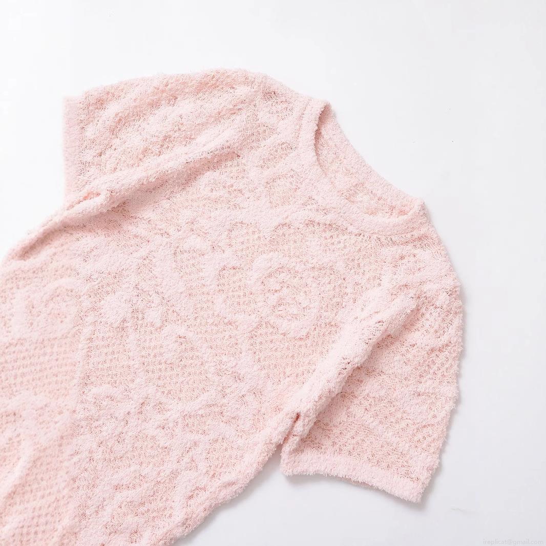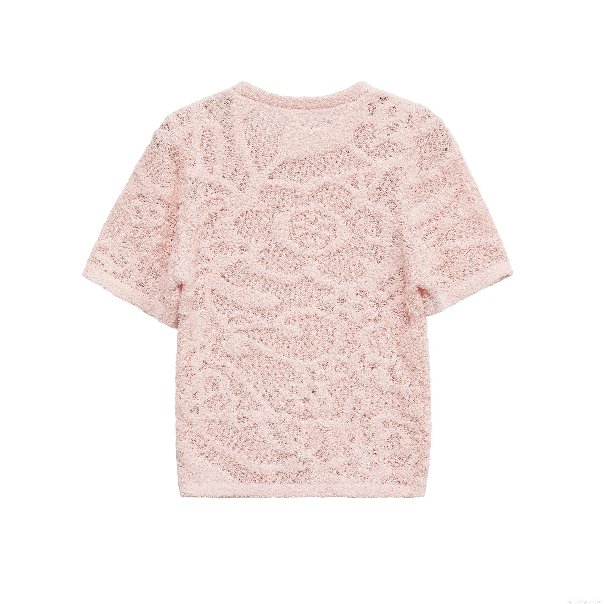 Women's Short Sleeve Knit Top 3D Floral Textured Crew Neck Loose Casual Polyester T-Shirt Pink Streetwear Summer Fashion Top