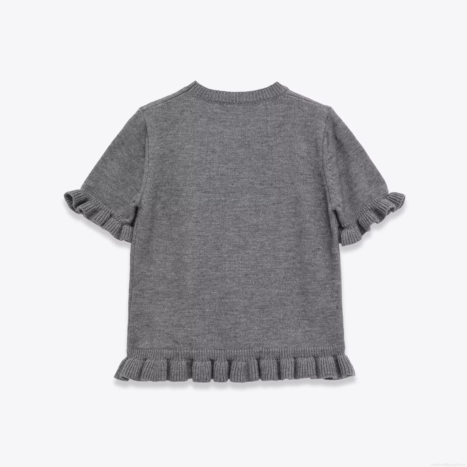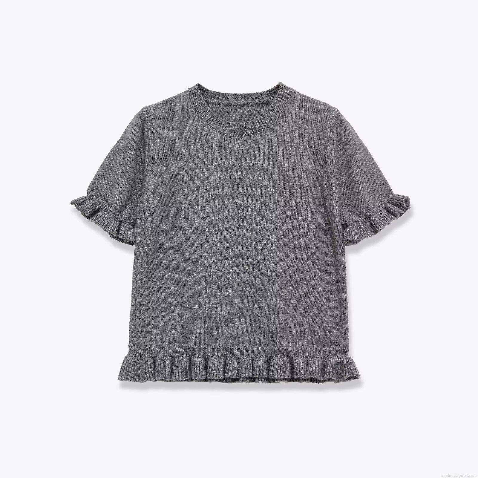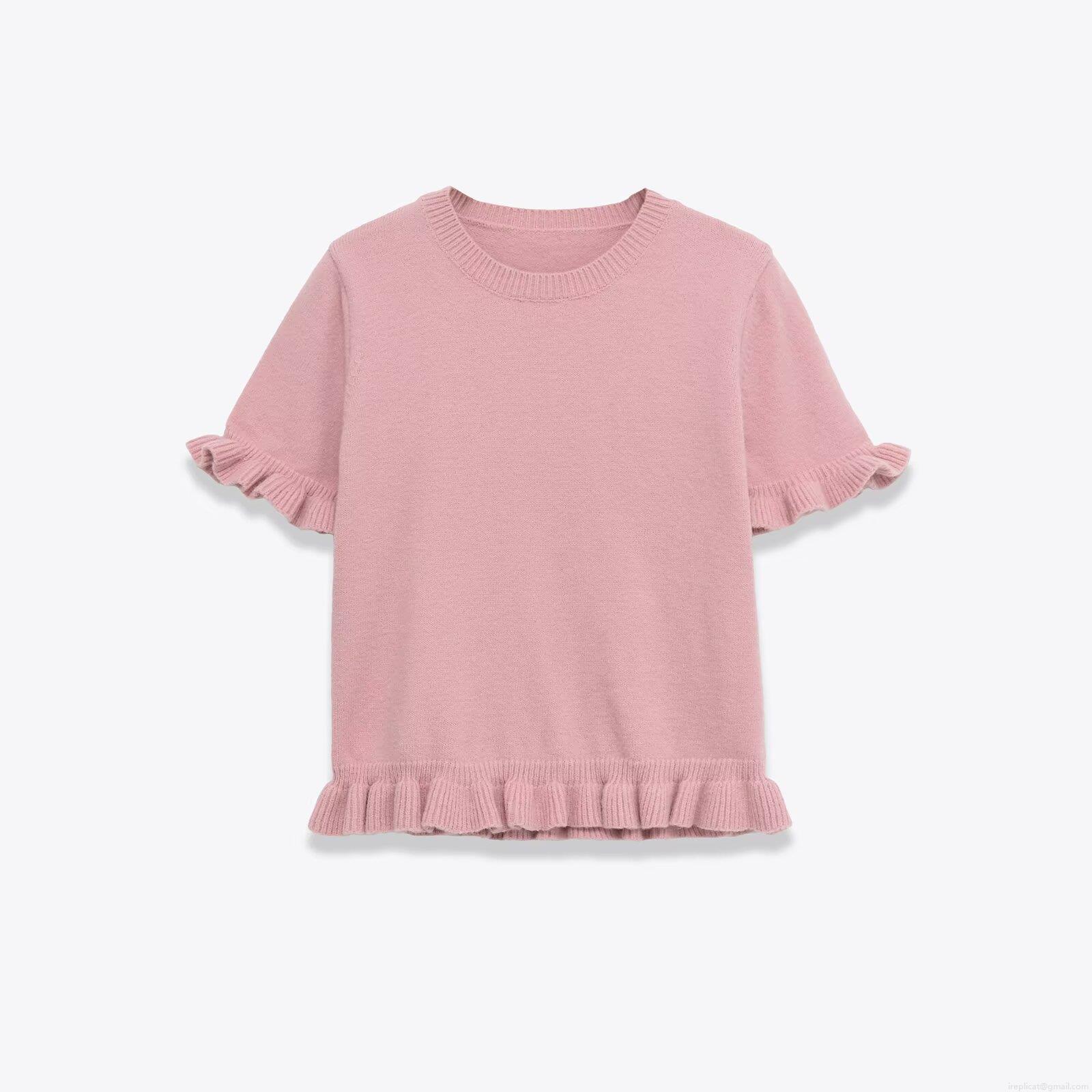 Women's Short Sleeve Knitted Sweater Top With Ruffle Trim Crew Neck Solid Color Casual Polyester Pullover Fashion Autumn Streetwear
