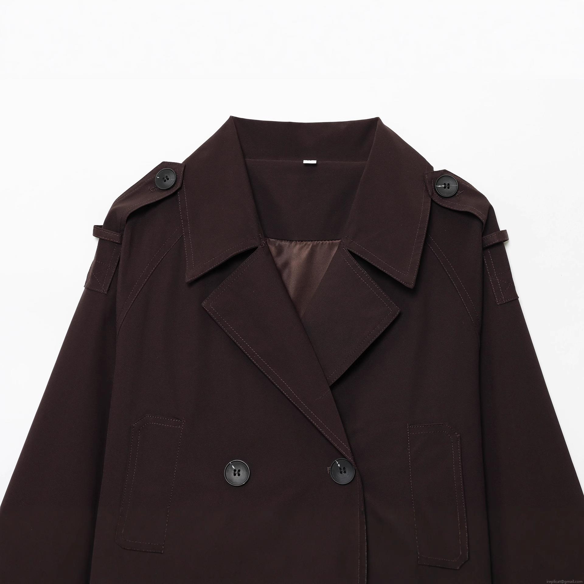Women's Short Trench Coat Fashion Double Breasted Lapel Jacket With Epaulettes Solid Coffee Polyester Windbreaker Coat For Autumn Spring Daily Casual Elegant Ladies Outerwear
