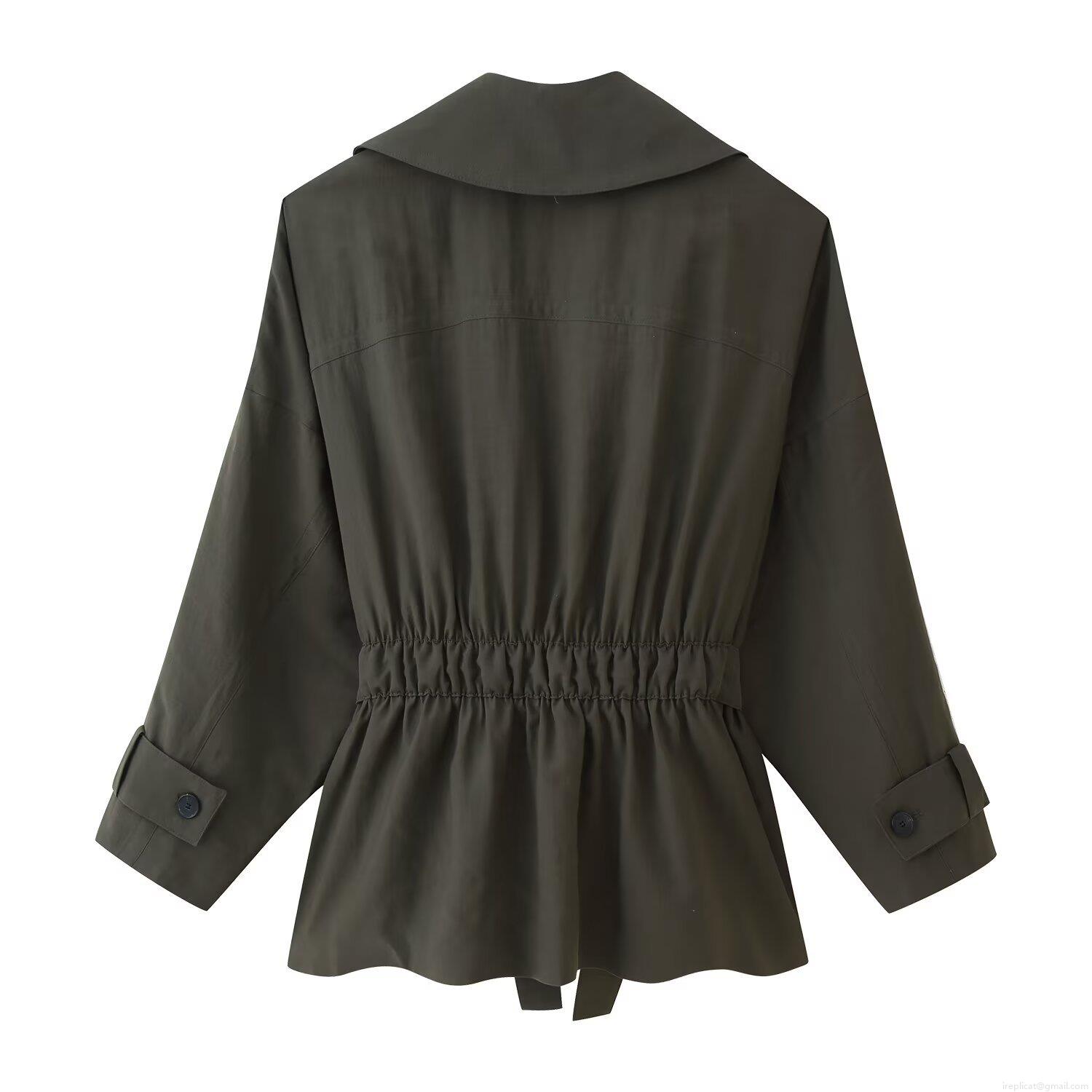 Women's Short Trench Coat Polyester Twill Windbreaker With Belt Lapel Casual Long Sleeve Jacket Autumn Fashion Outerwear