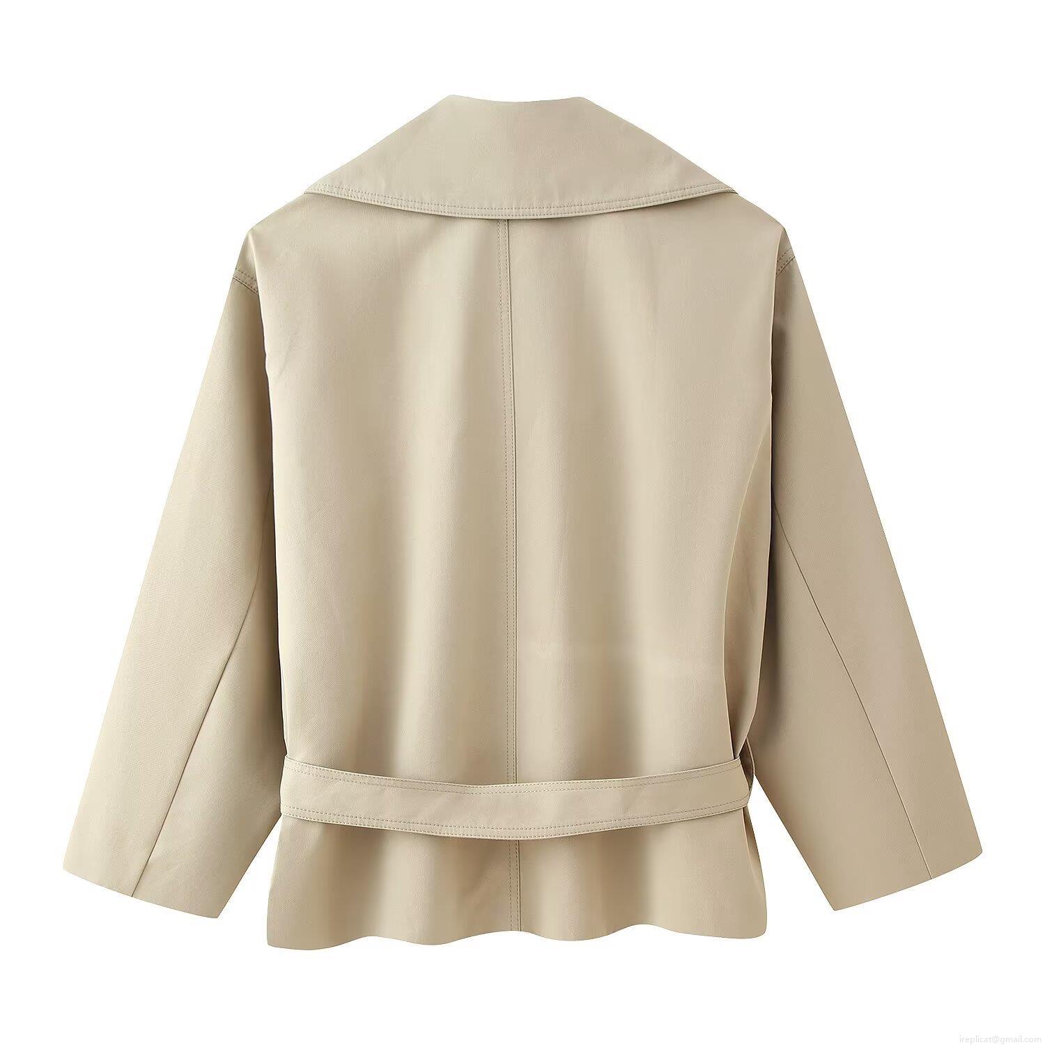 Women's Short Double Breasted Trench Coat Jacket With Large Lapel And...
