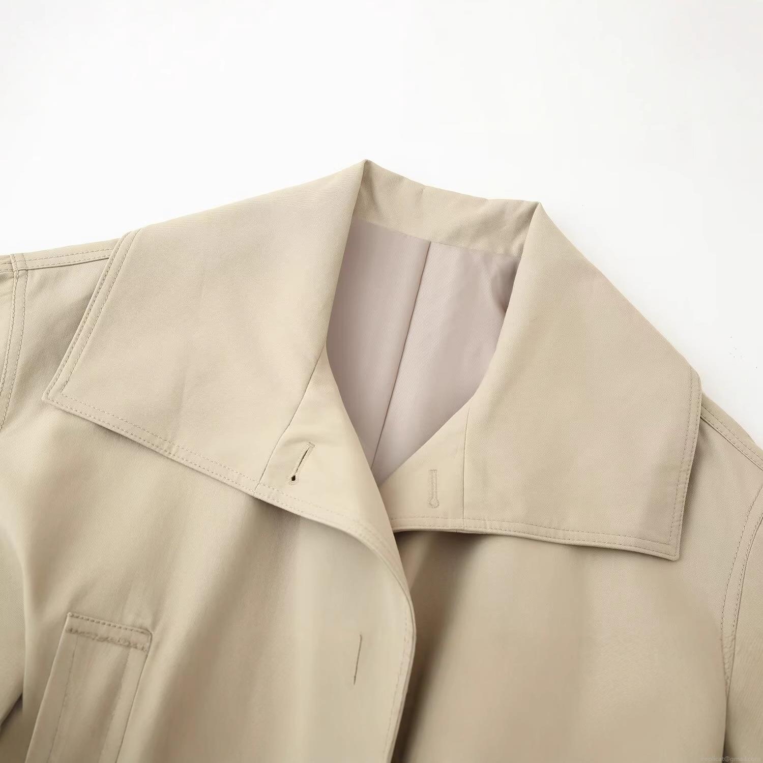 Women's Short Trench Coat Polyester Twill Windbreaker With Belt Lapel...