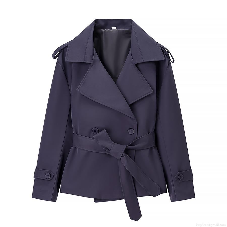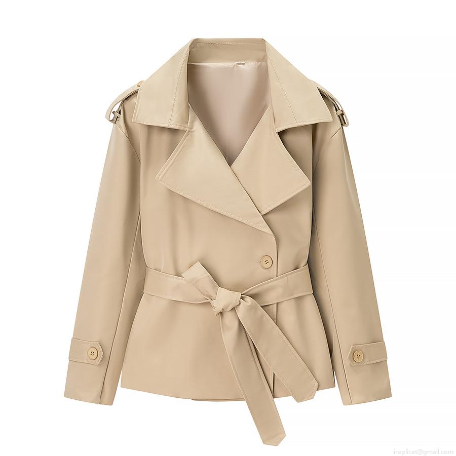 Women's Short Trench Jacket With Belt Double Breasted Lapel Windbreaker Coat Casual Loose Streetwear For Autumn Spring Lady Fashion Solid Color Outerwear