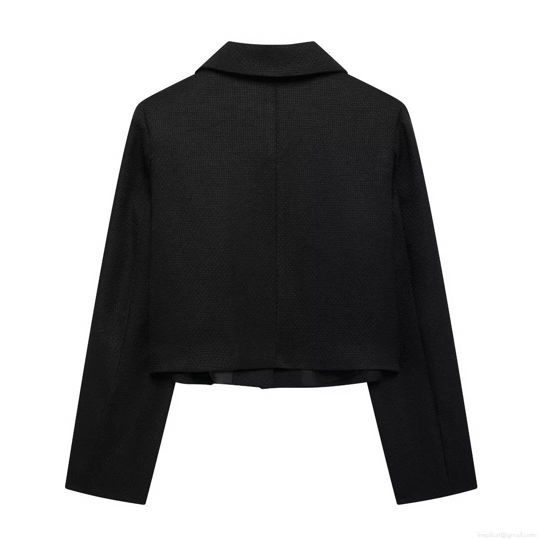 Women's Short Tweed Jacket Elegant Turn-down Collar Long Sleeve Outerwear Polyester Button Up Coat For Office Daily Streetwear Lady