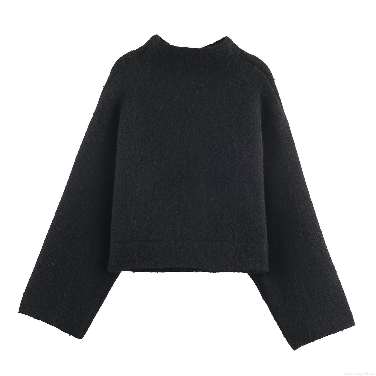 Women's Short Wool Blend Cape Jacket Elegant Stand Collar Zipper Solid Black Coat Loose Fit Thick Warm Outerwear for Autumn Winter Dating Party Women Fashion