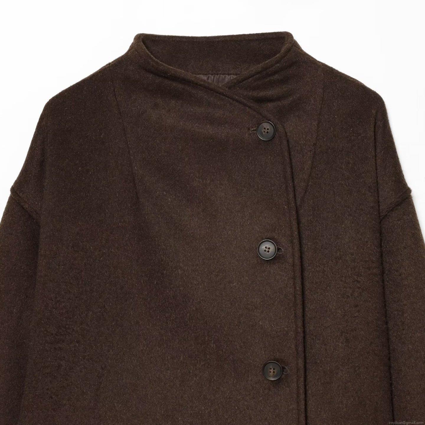 Women's Short Wool Look Polyester Jacket Stand Collar Side Button Winter Coat Casual Office Commuter Long Sleeve Outerwear For Ladies