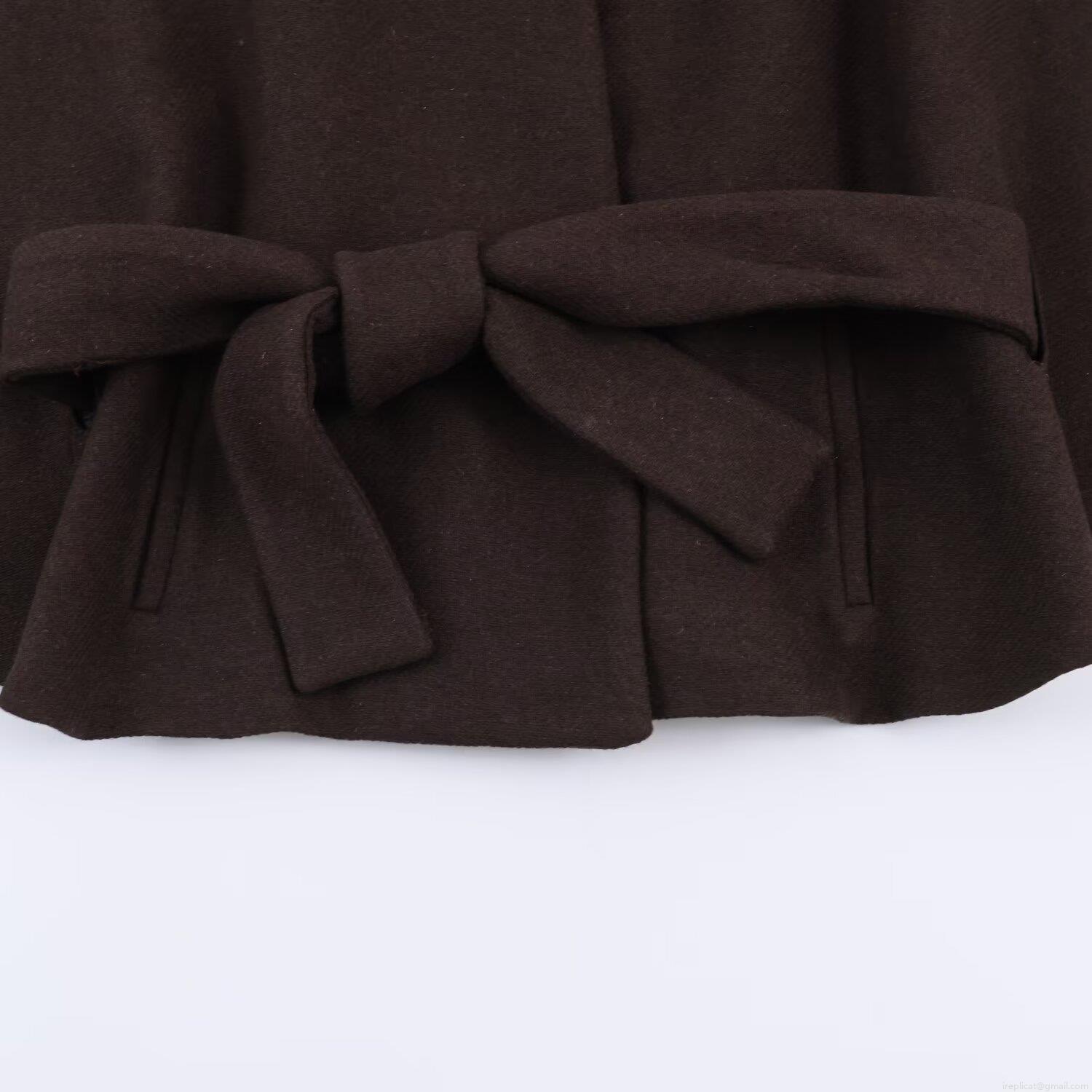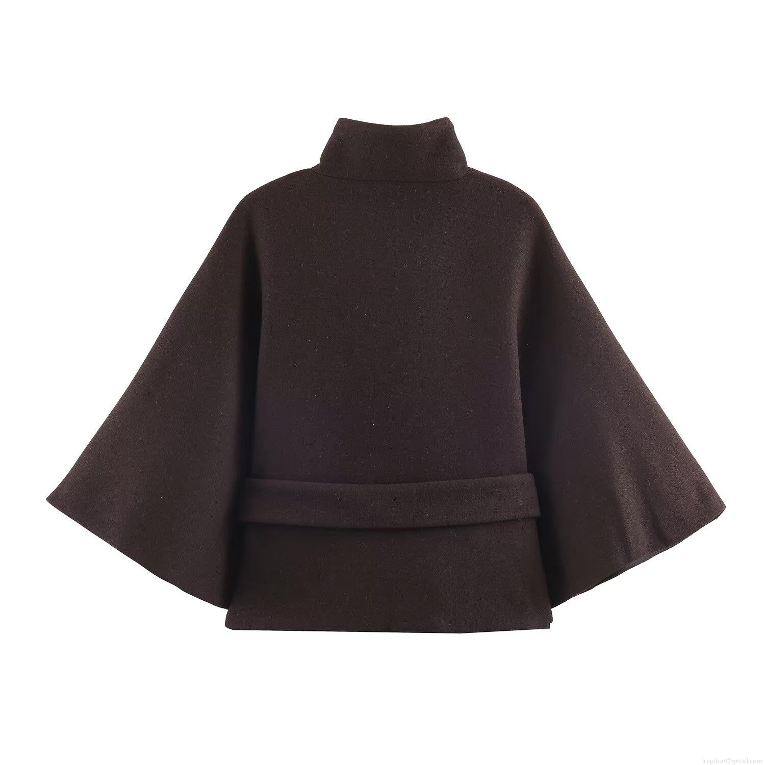 Women's Short Woolen Cloak Coat With Belt Elegant Stand Collar Batwing Sleeve Polyester Warm Outerwear For Winter Fall Daily Casual Lady