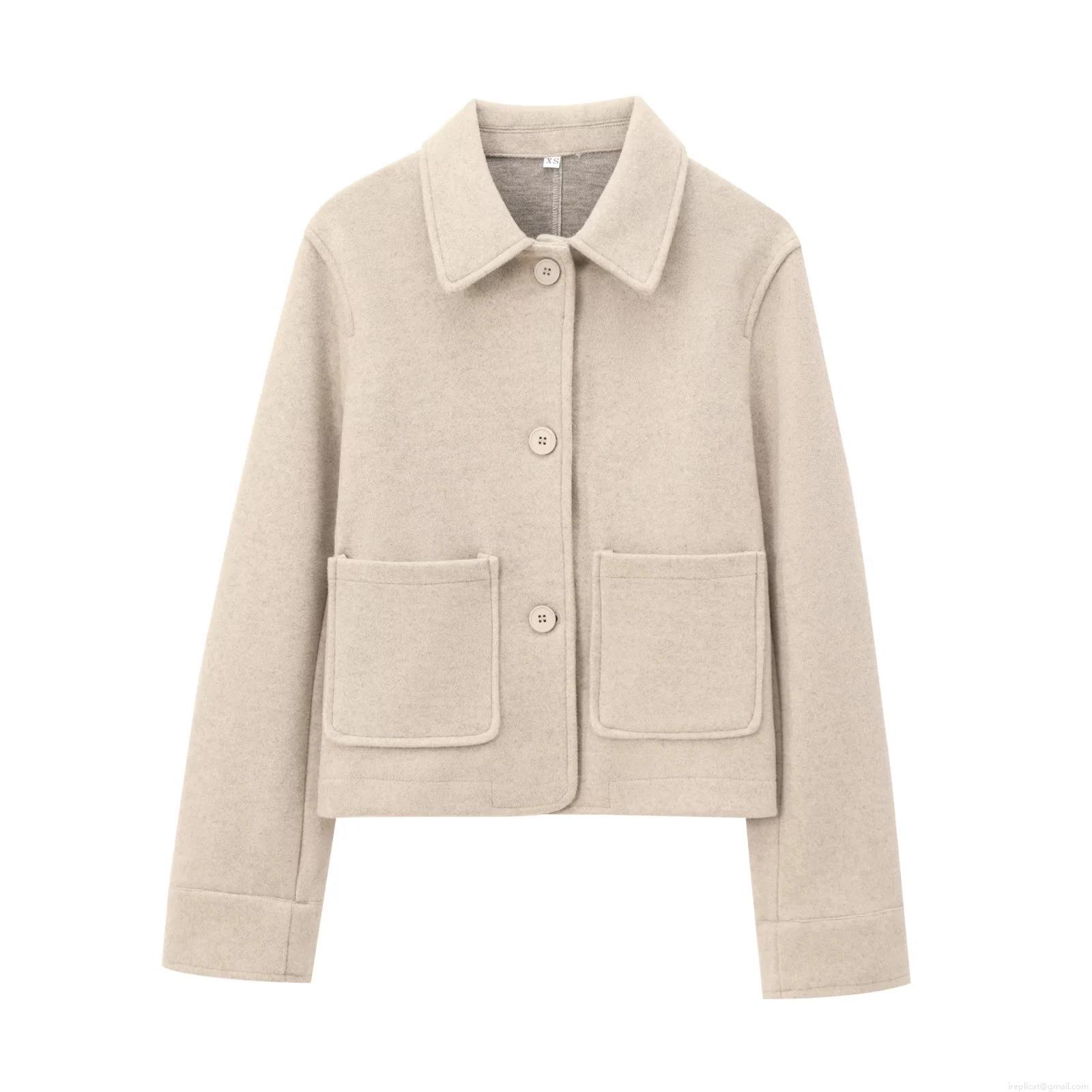 Women's Short Woolen Jacket Coat Lapel Collar Single Breasted With Pockets Loose Fit Casual Streetwear Polyester Outwear For Ladies