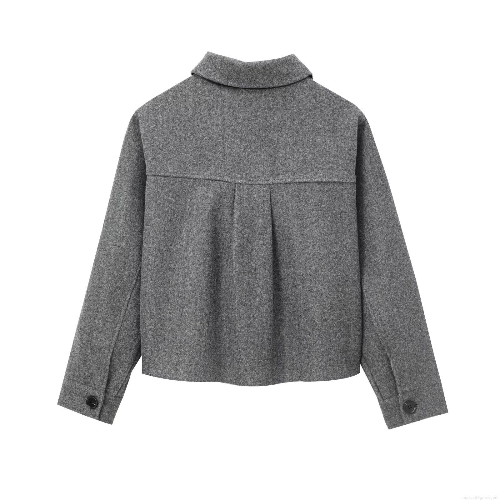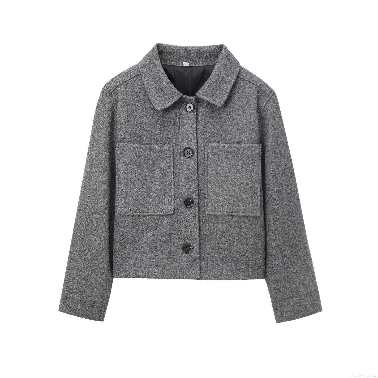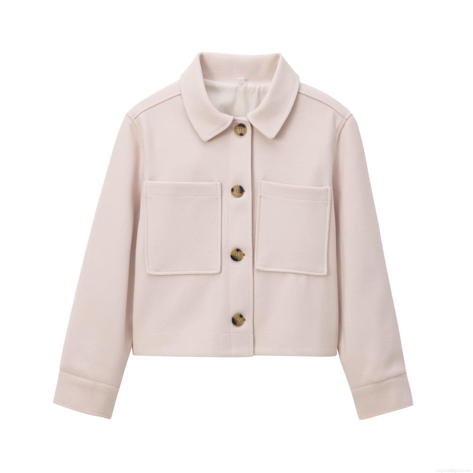 Women's Short Wool-Like Jacket Turn-Down Collar Single Breasted Solid Color Casual Streetwear Coat With Two Large Pockets For Daily Autumn Wear