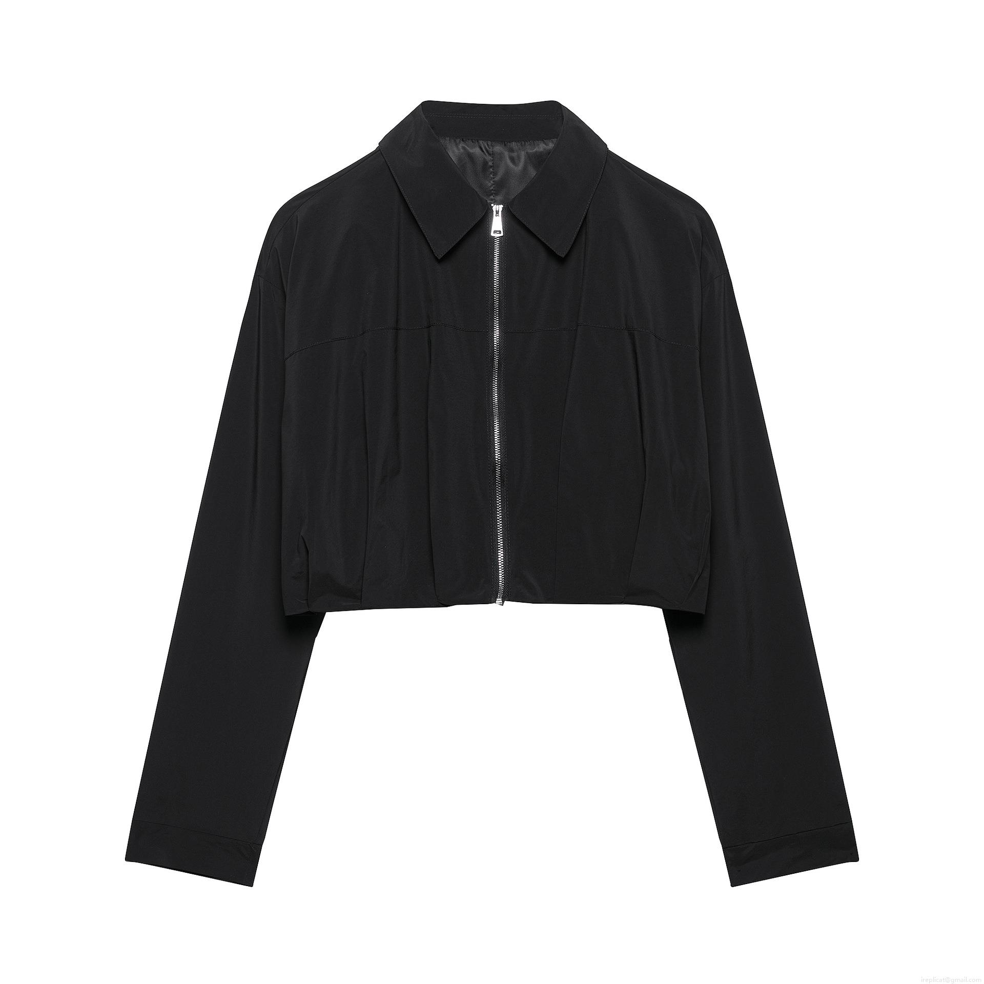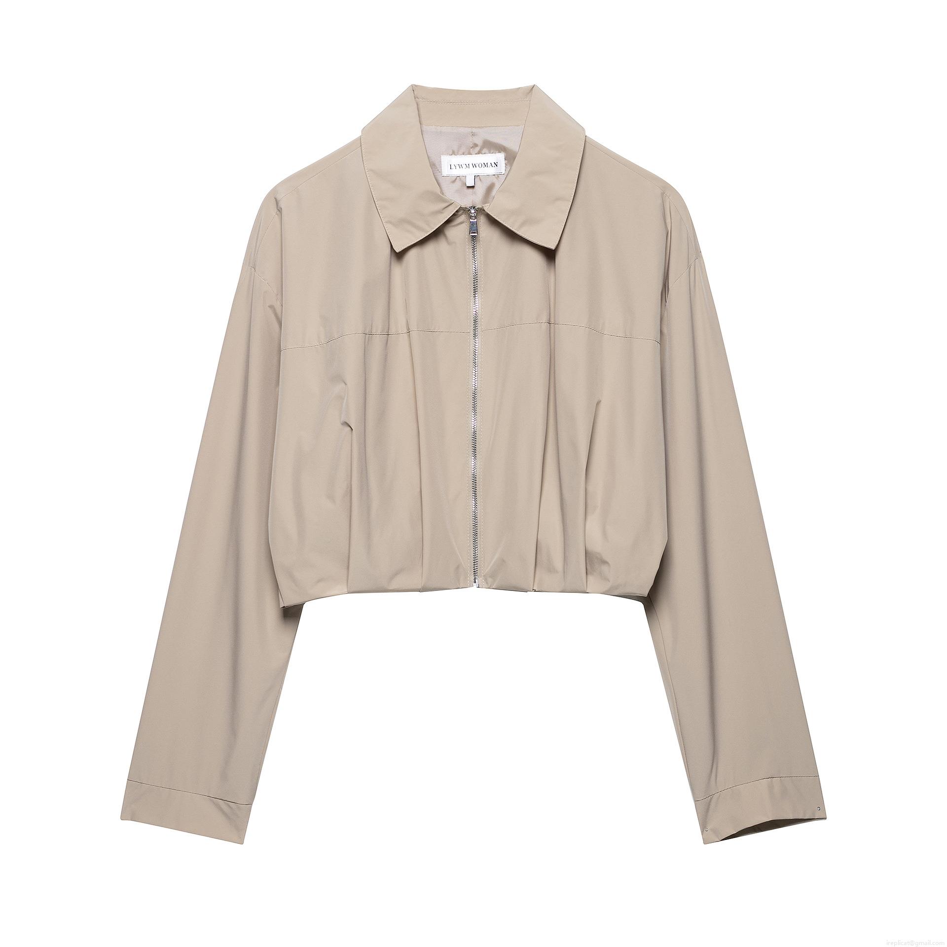 Women's Short Zip Up Jacket Polyester Long Sleeve Turn-over Collar Pleated Hem Casual Streetwear Fashion Outerwear for Ladies Spring Autumn Solid Color