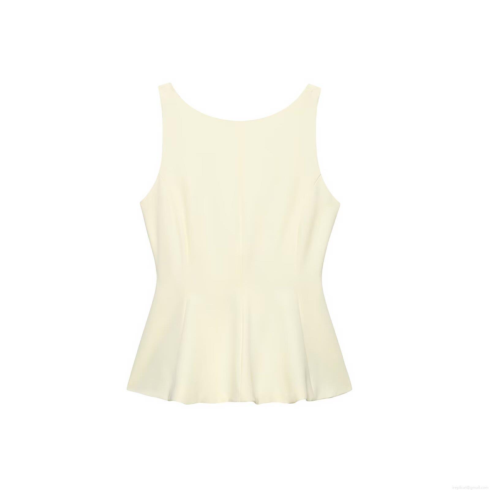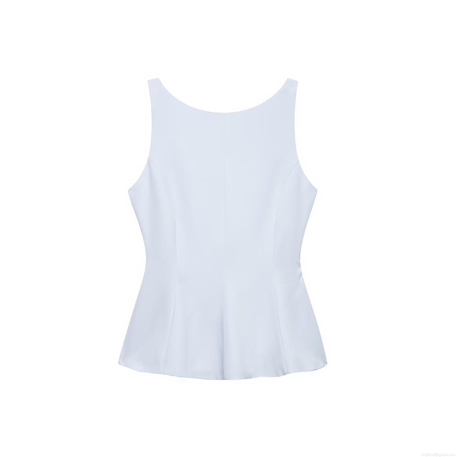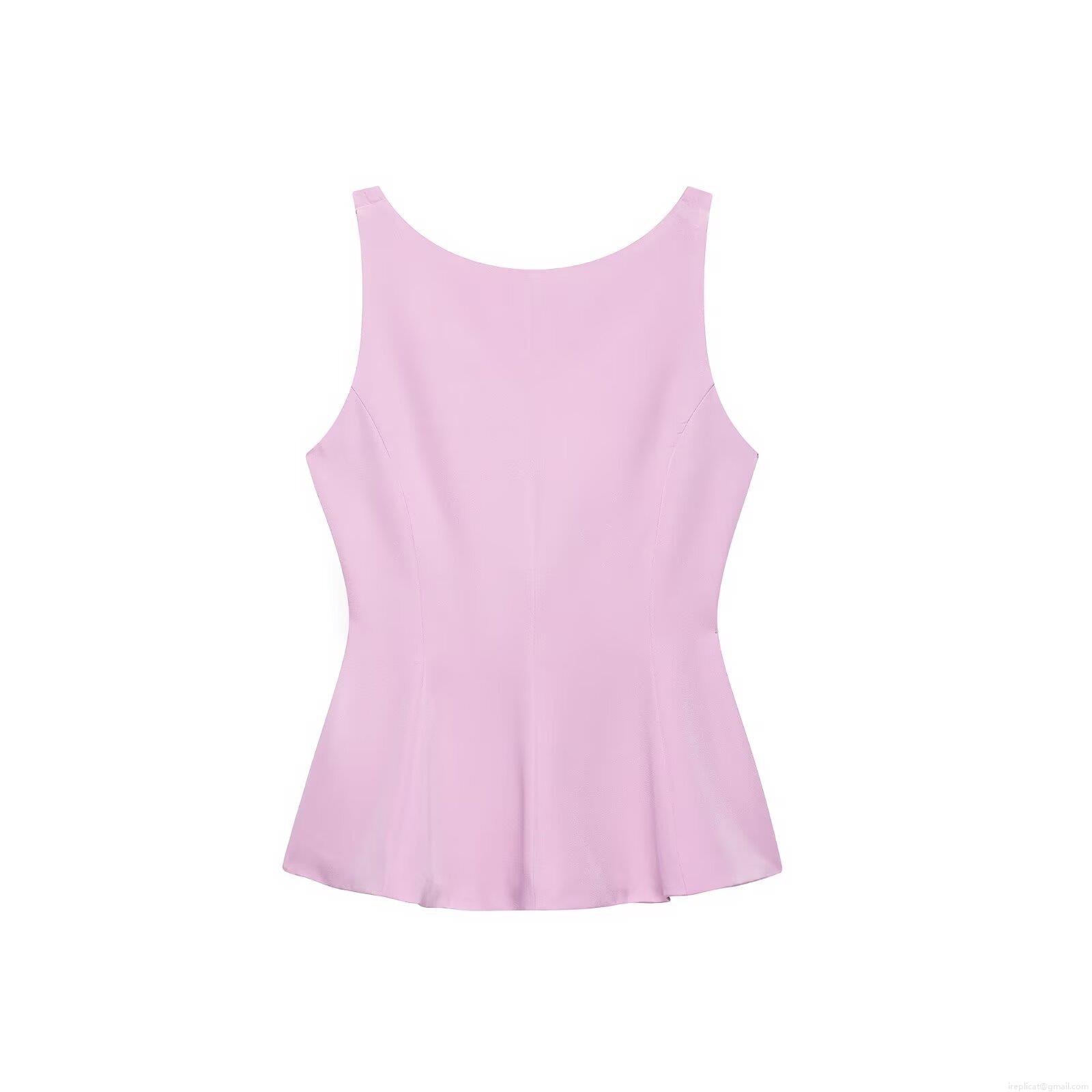 Women's Sleeveless Backless Peplum T-shirt Top With Bow Tie Back 100% Polyester Solid Color Slim Fit Summer Streetwear Vest Top