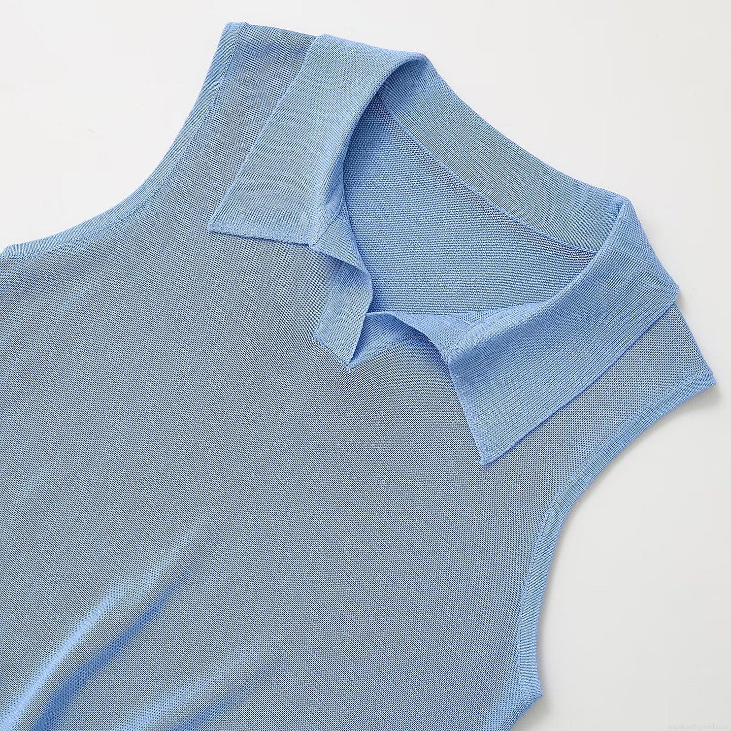 Women's Sleeveless Knit Polo Shirt Mercerized Cotton Solid Color Casual Tank Top Summer Office Commuting Breathable Soft Vest For Ladies