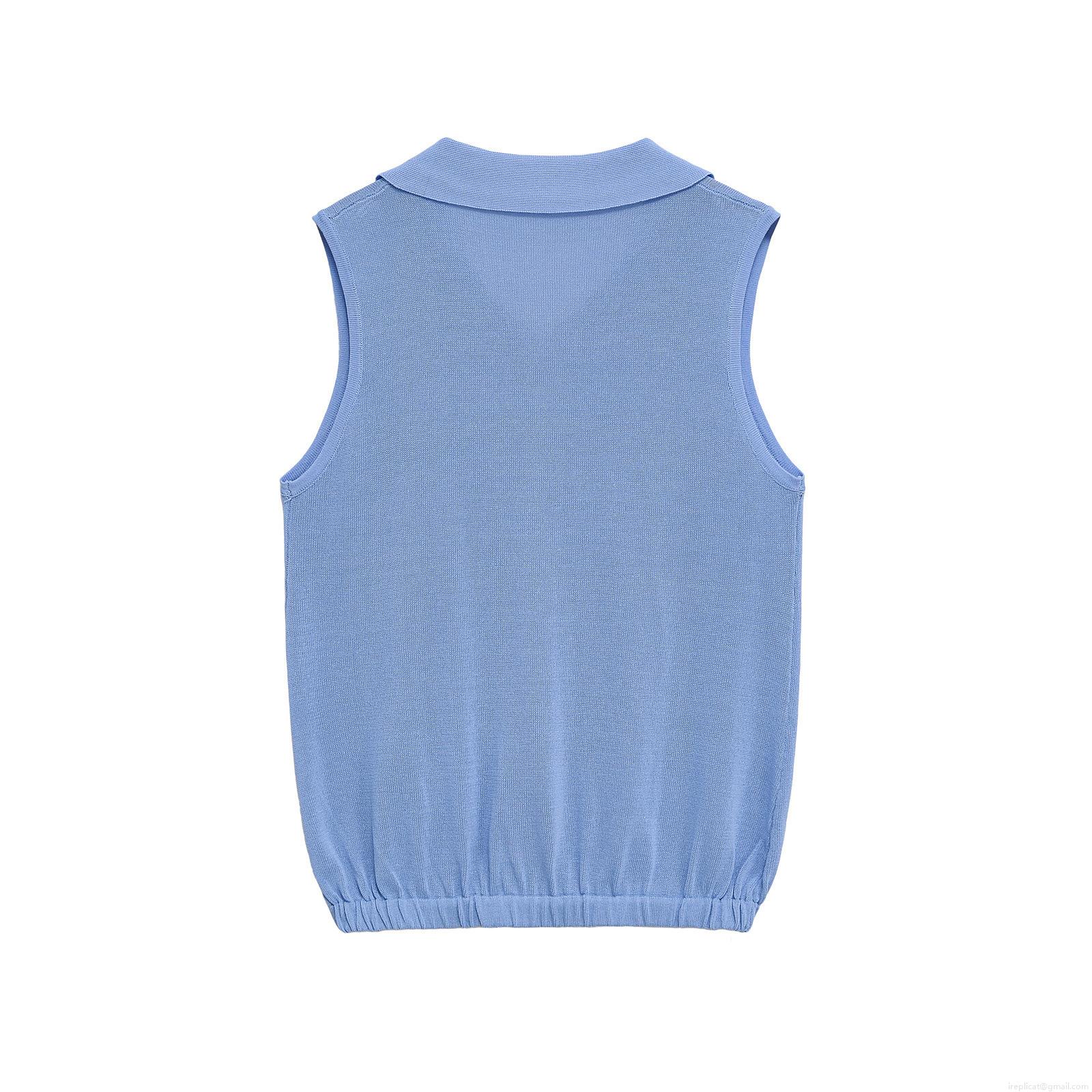 Solid Color, Polo Collar, Knitted Texture, Sleeveless Design, Ribbed Hem