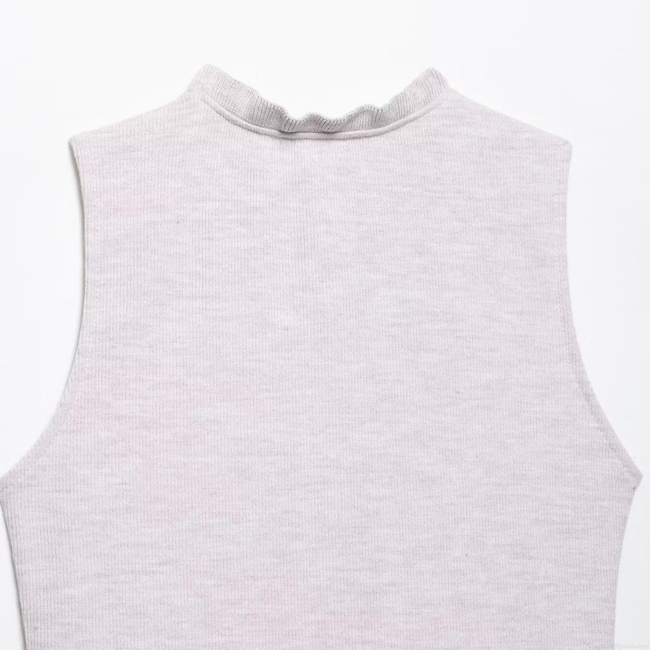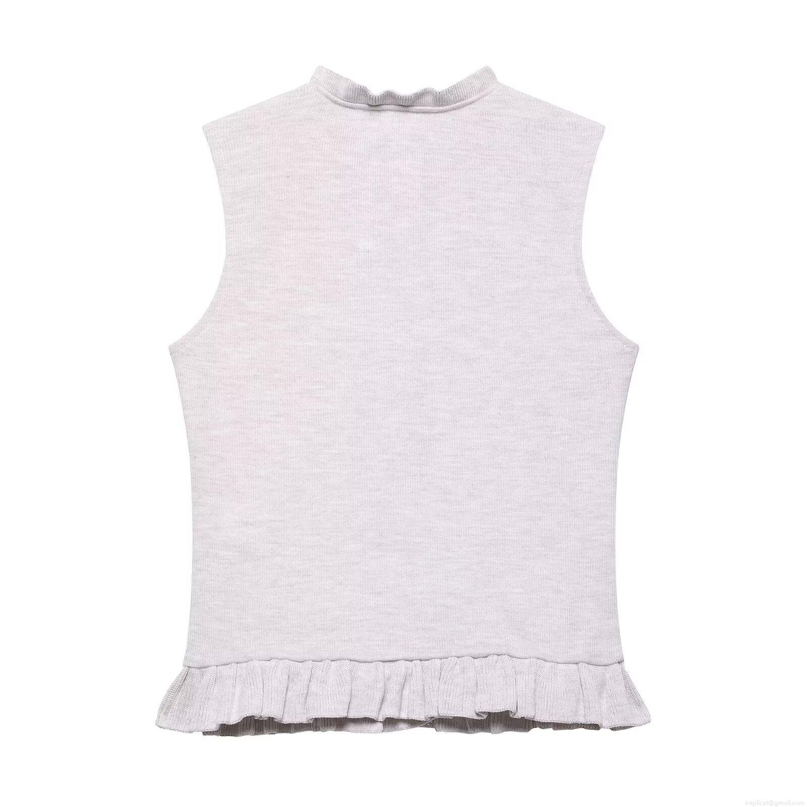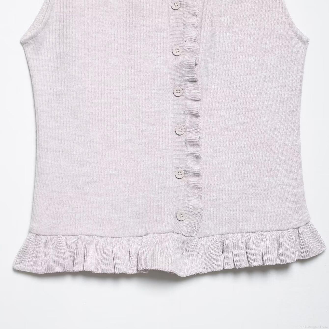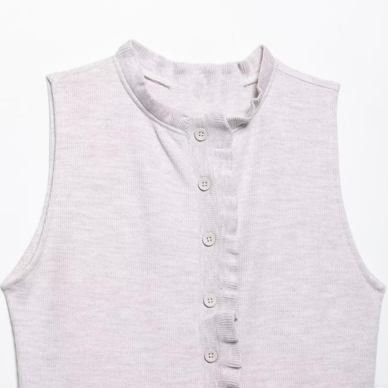 Women's Sleeveless Knitted Top With Ruffle Trim Single Breasted Slim Fit Soft Polyester Vest Sweet Casual Summer Tank Top For Women