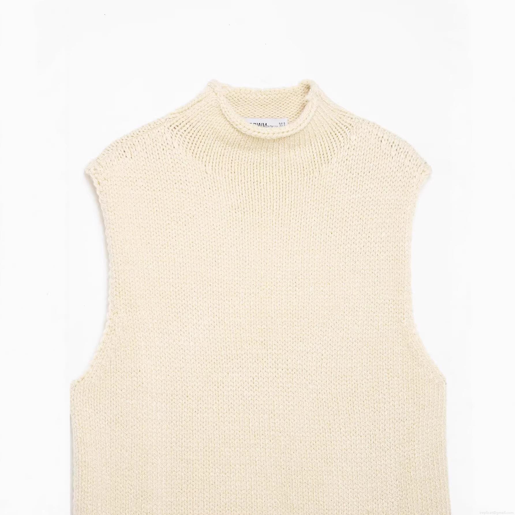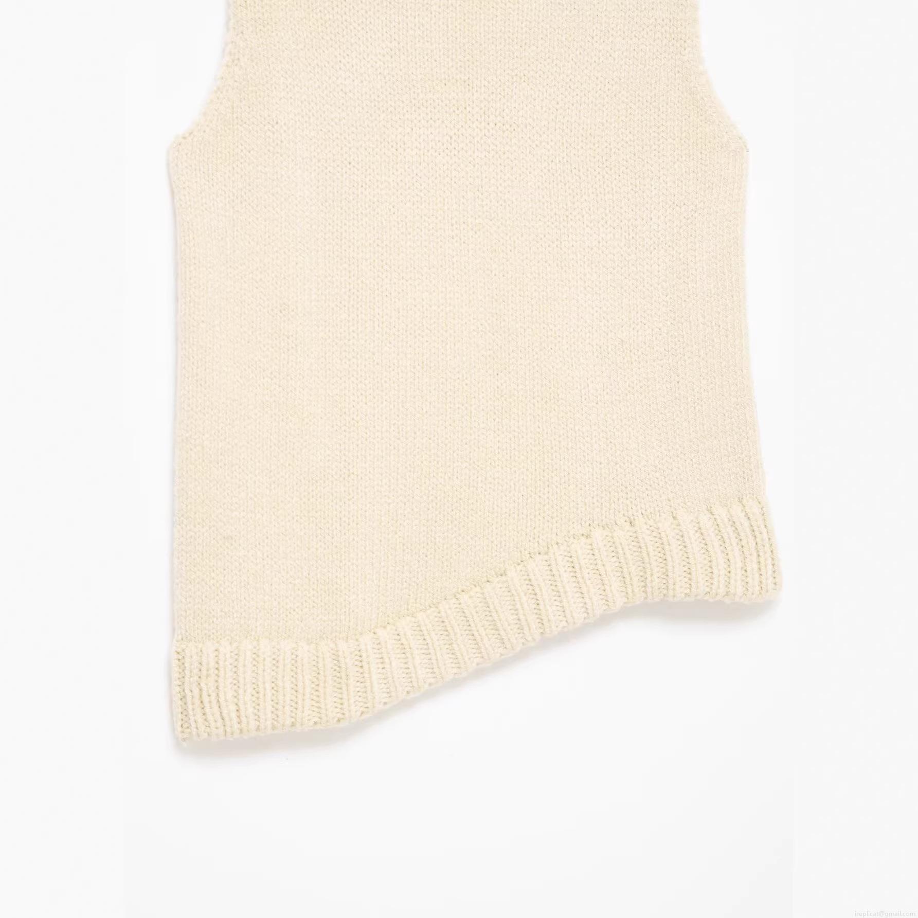 Women's Sleeveless Knitted Vest Turtleneck Asymmetric Hem Solid Color Chic Polyester Pullover Sweater Top For Spring Autumn Casual Women