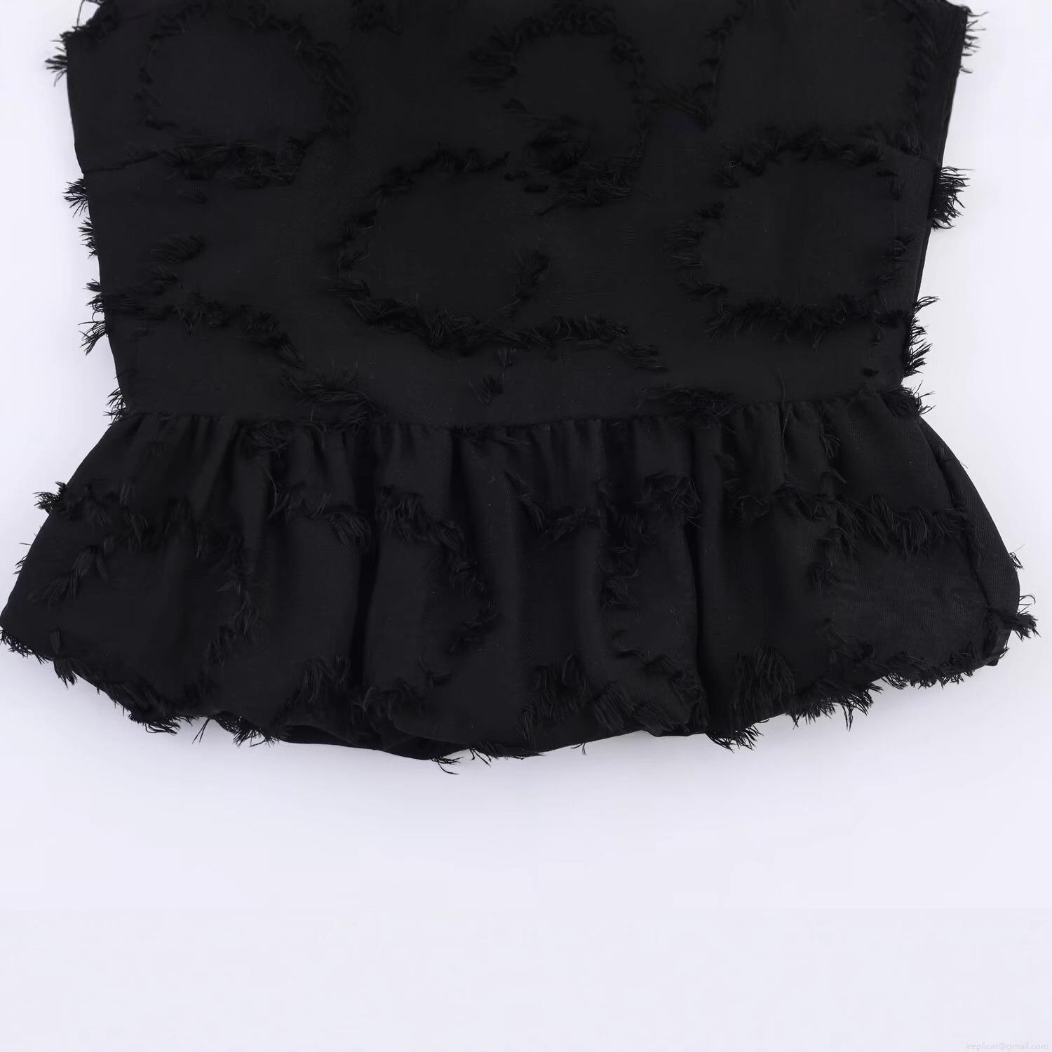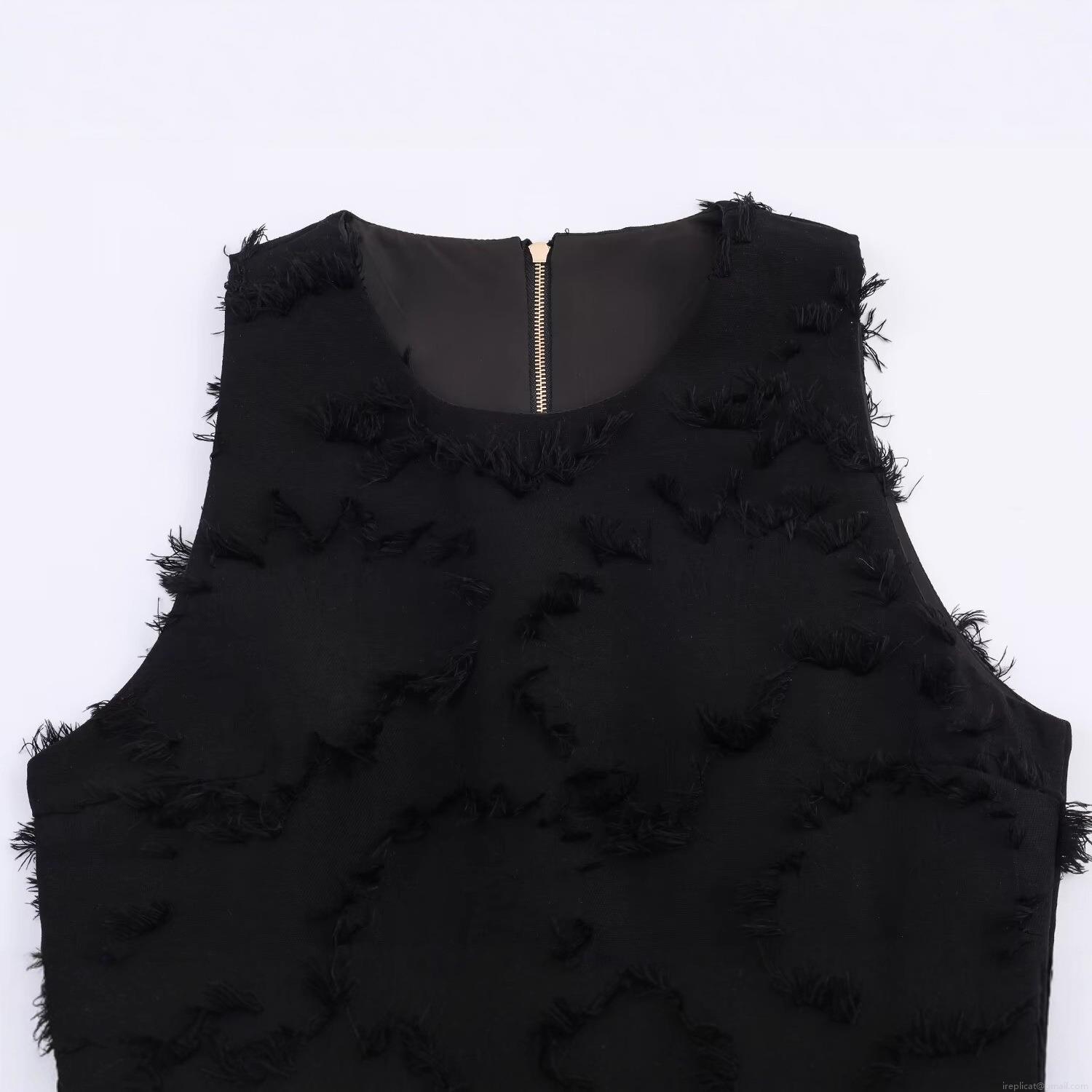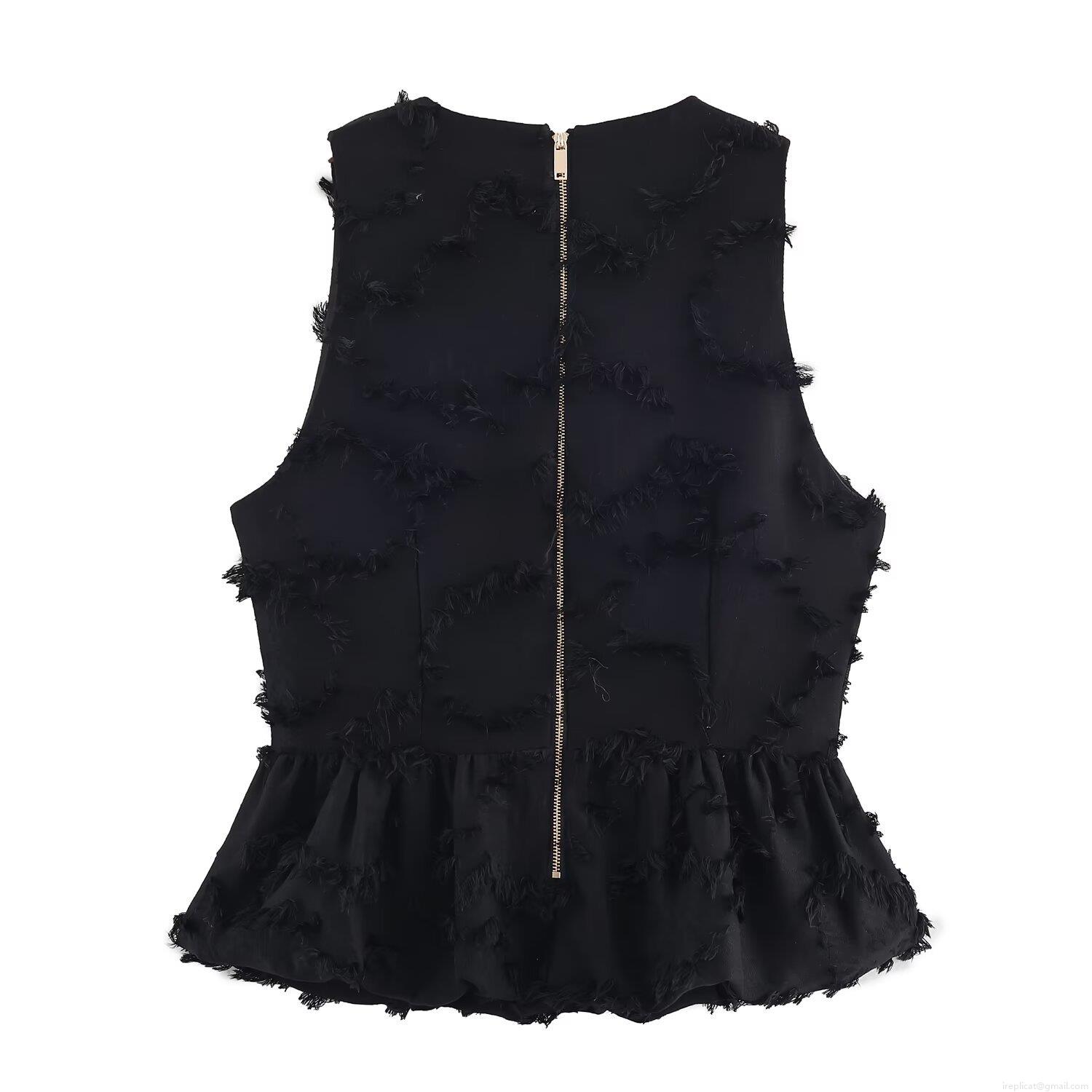 Women's Sleeveless T-Shirt Top with Fringe Tassel Ruffle Hem and Back Zipper Detail Street Style Crew Neck Solid Color Polyester Blouse for Summer
