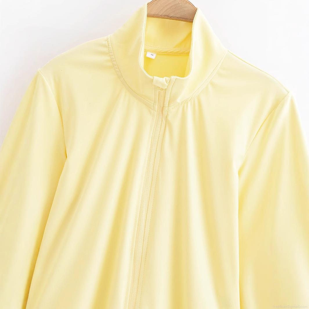 Solid Color, Zipper, Stand-up Collar, Thumb Buckle Design