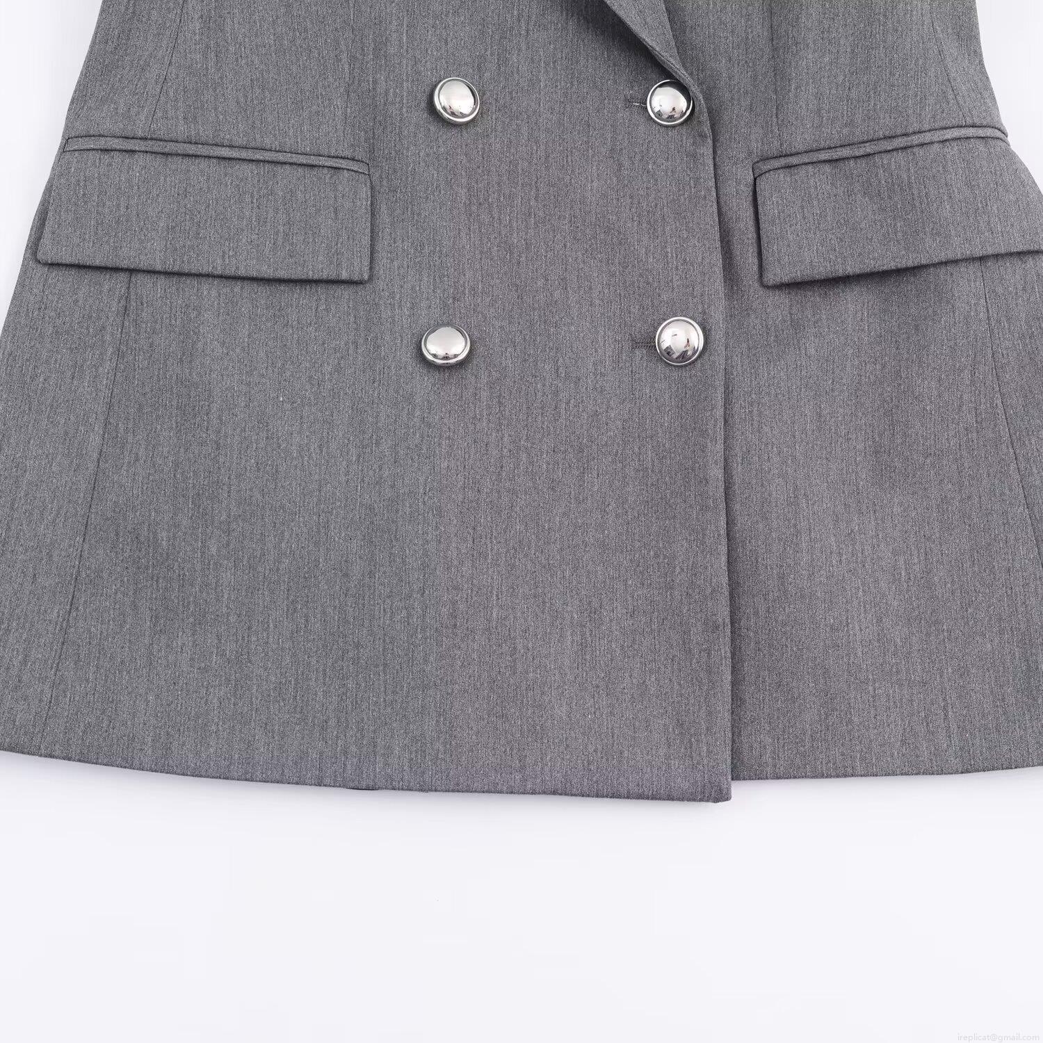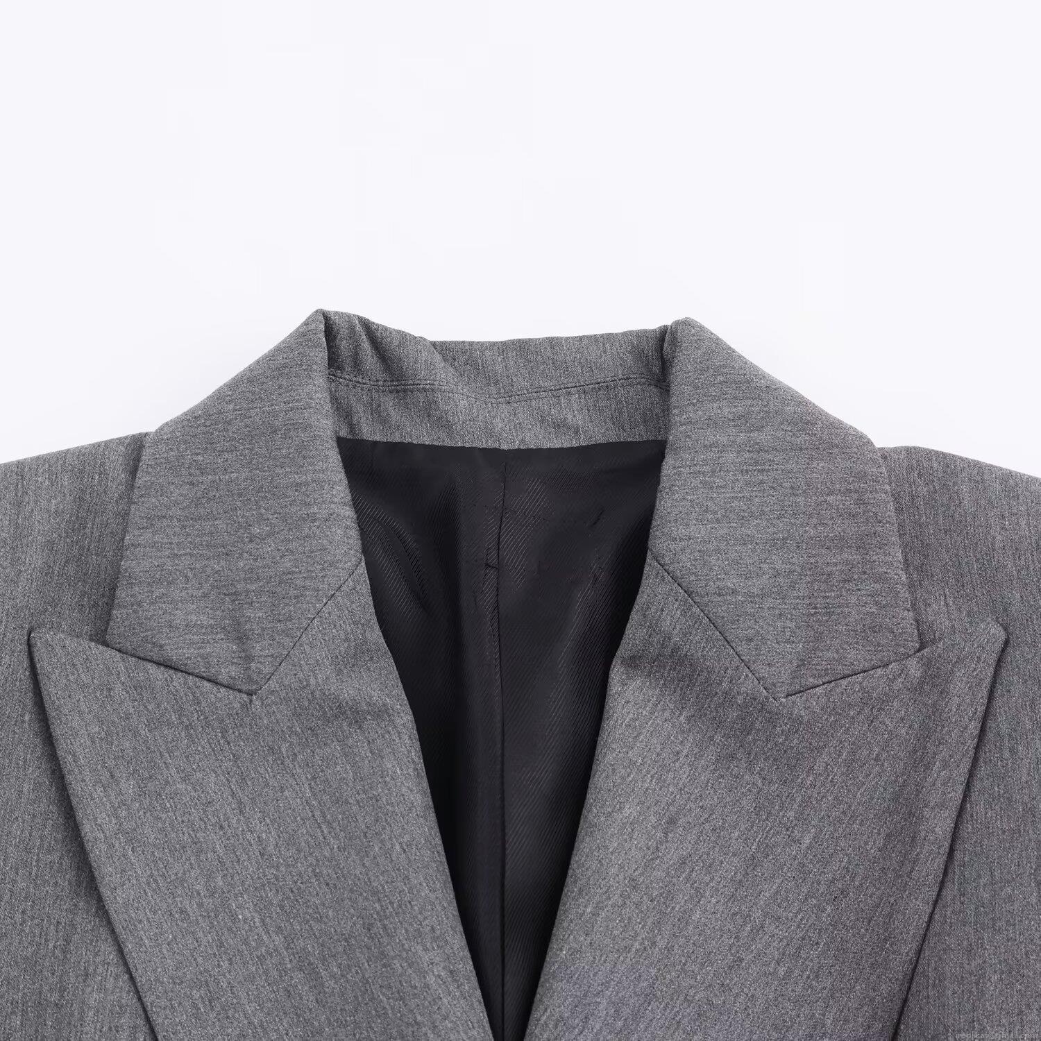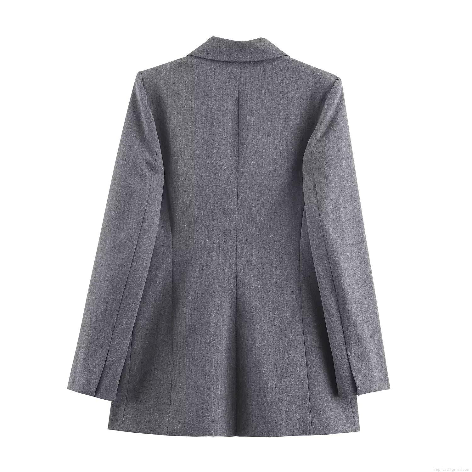Women's Slim Fit Double Breasted Blazer Jacket Grey Polyester Professional Office Wear Elegant Autumn Suit Outerwear