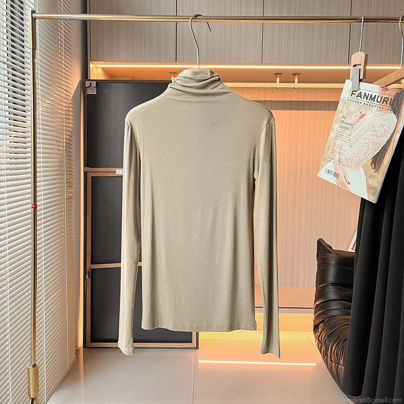 Women's Slim Fit High Neck Long Sleeve T-Shirt Cotton Blend Ribbed Knit Mock Neck Pullover Basic Undershirt Top Daily Wear Casual Style