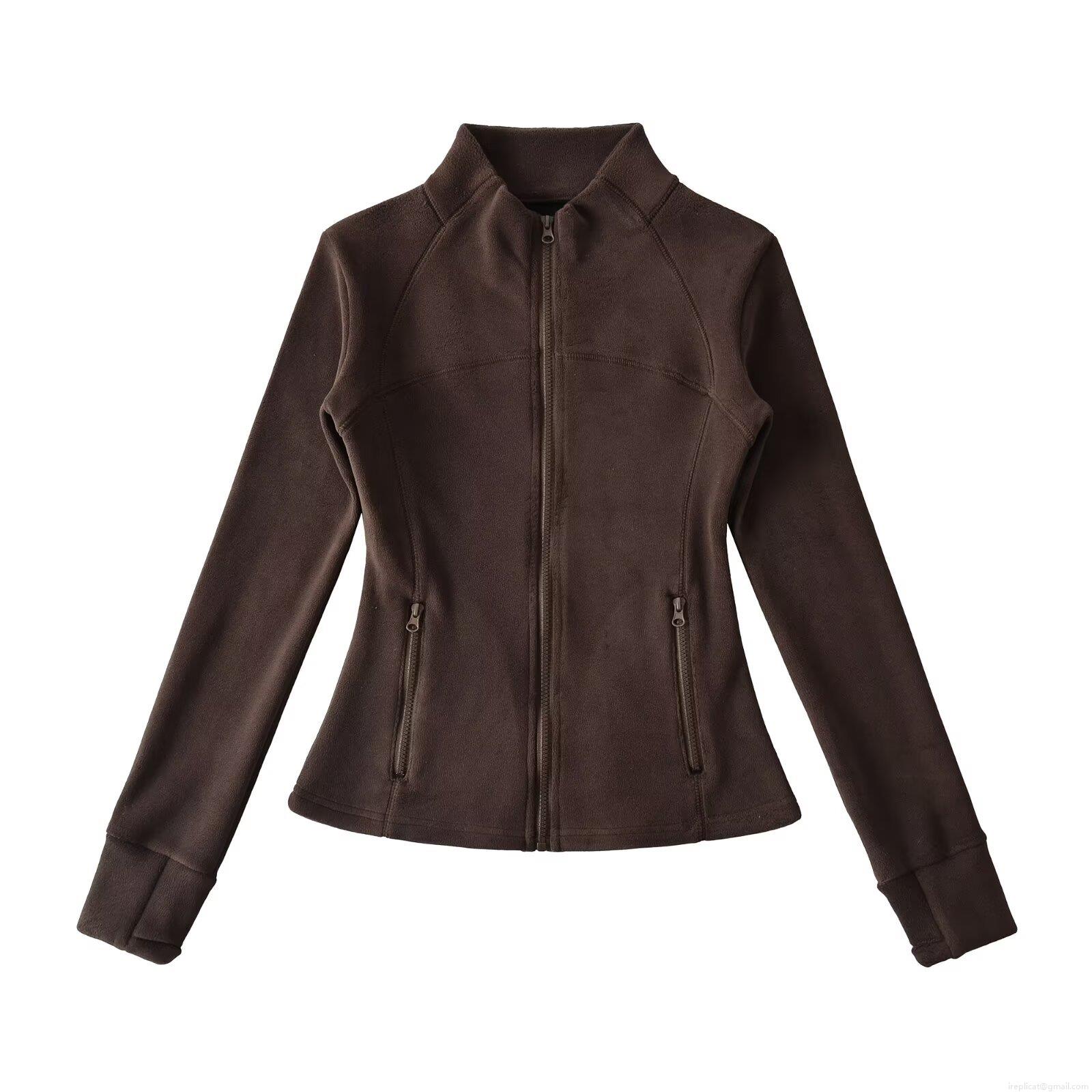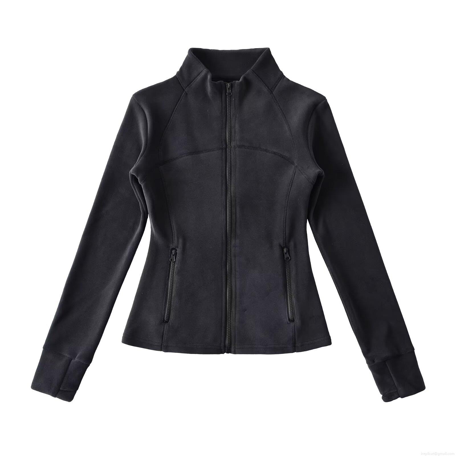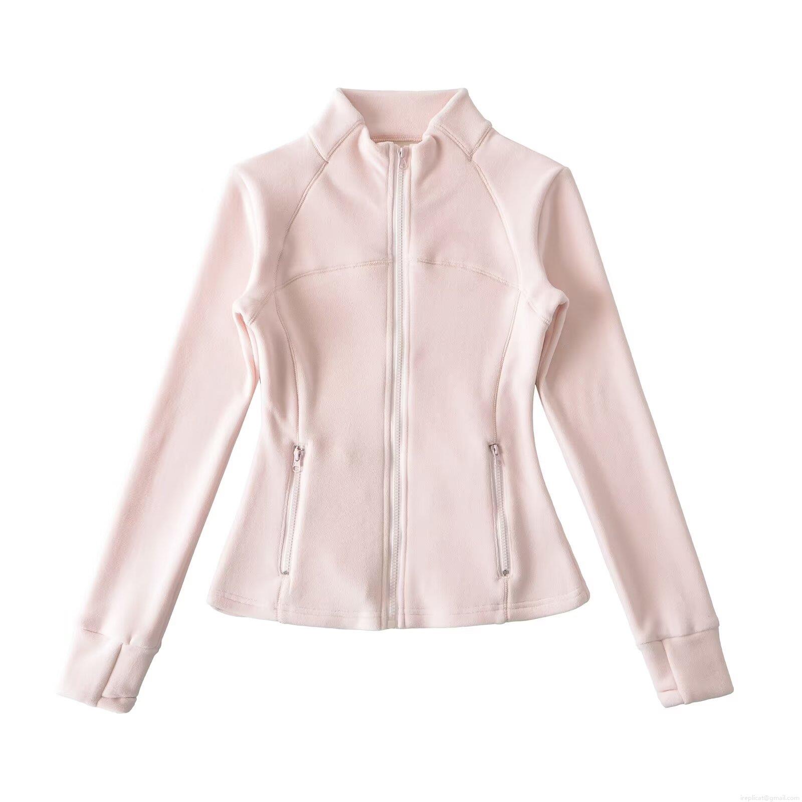 Women's Slim Fit Polar Fleece Jacket Full Zip Stand Collar Long Sleeve Sport Yoga Coat With Thumbholes Solid Color Outdoor Warm Outerwear