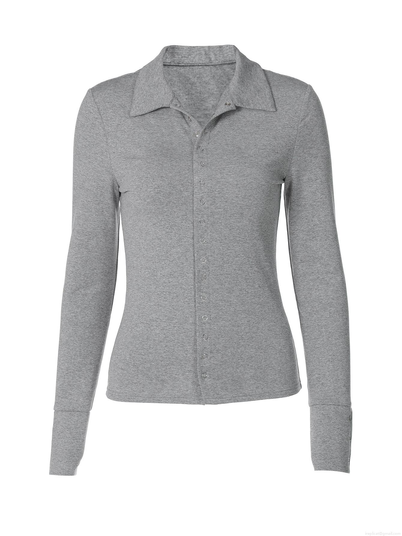 Women's Slim Fit Ribbed Knitted Long Sleeve T-Shirt With Polo Collar Single Breasted Button Front Cardigan Tops For Fall Streetwear Casual Solid Color Outfits