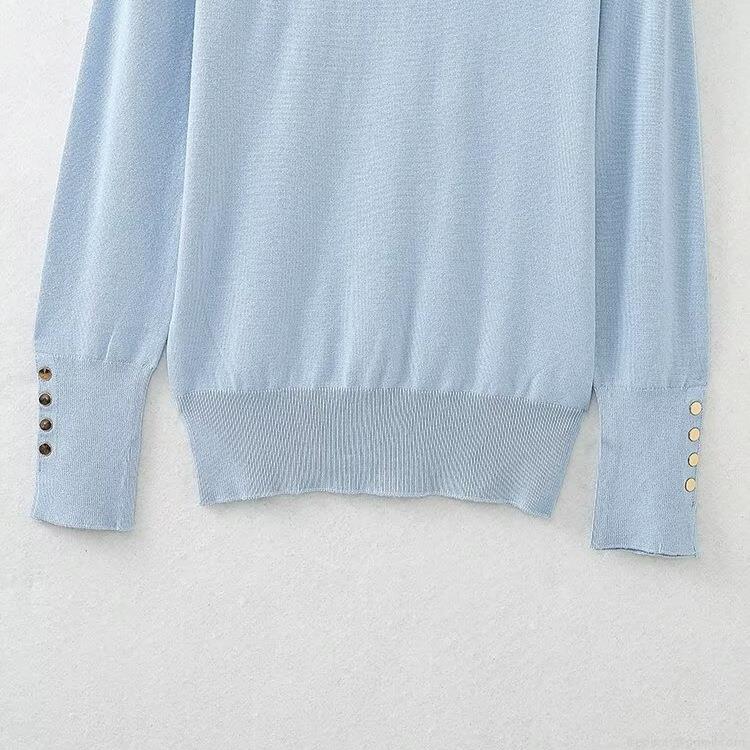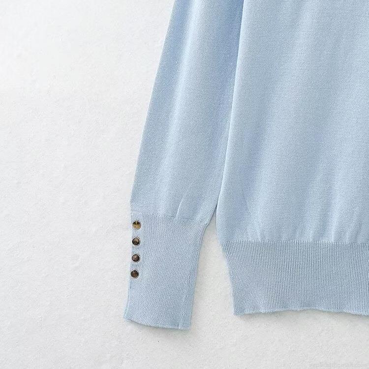 Women's Slim Fit Turtleneck Knit Sweater 100% Polyester Ribbed Long Sleeve Top With Gold Decorative Buttons Casual Solid Striped Winter Pullover