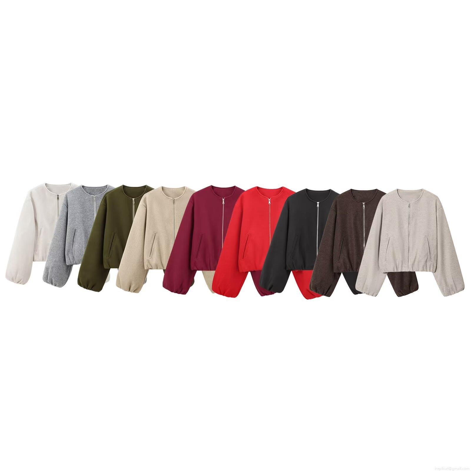 Women's Casual Bomber Jacket Soft Woolen Fabric Zipper Up Round Neck...
